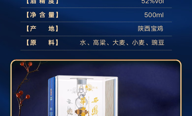 西凤酒 华山论剑(柔雅)蓝标52度凤香型白酒500ml*1瓶/6瓶整箱