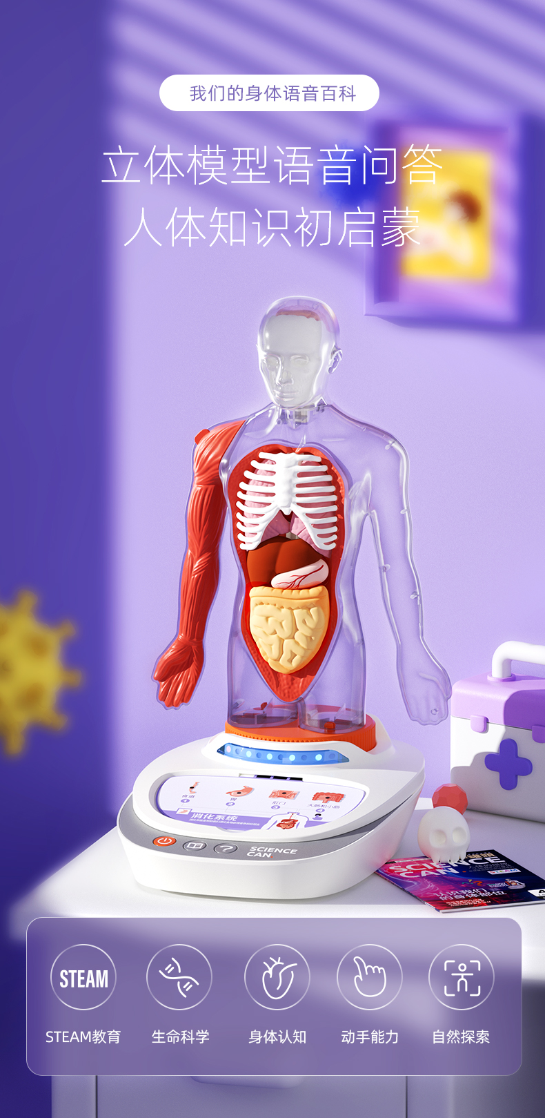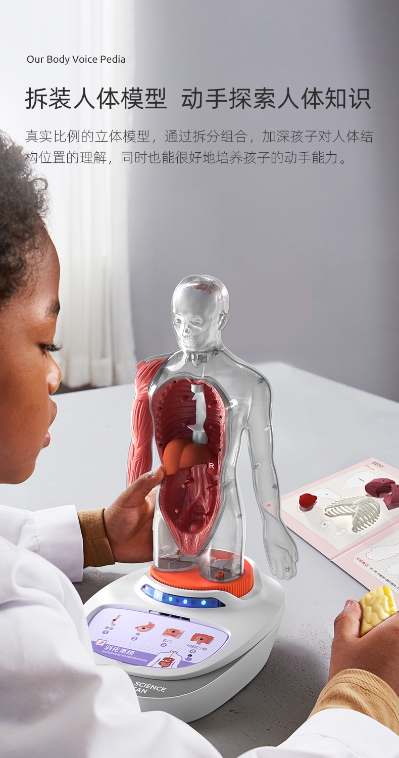 科学罐头人体解剖模型器官可拆卸儿童教学玩具我们的身体语音百科(3岁以上)