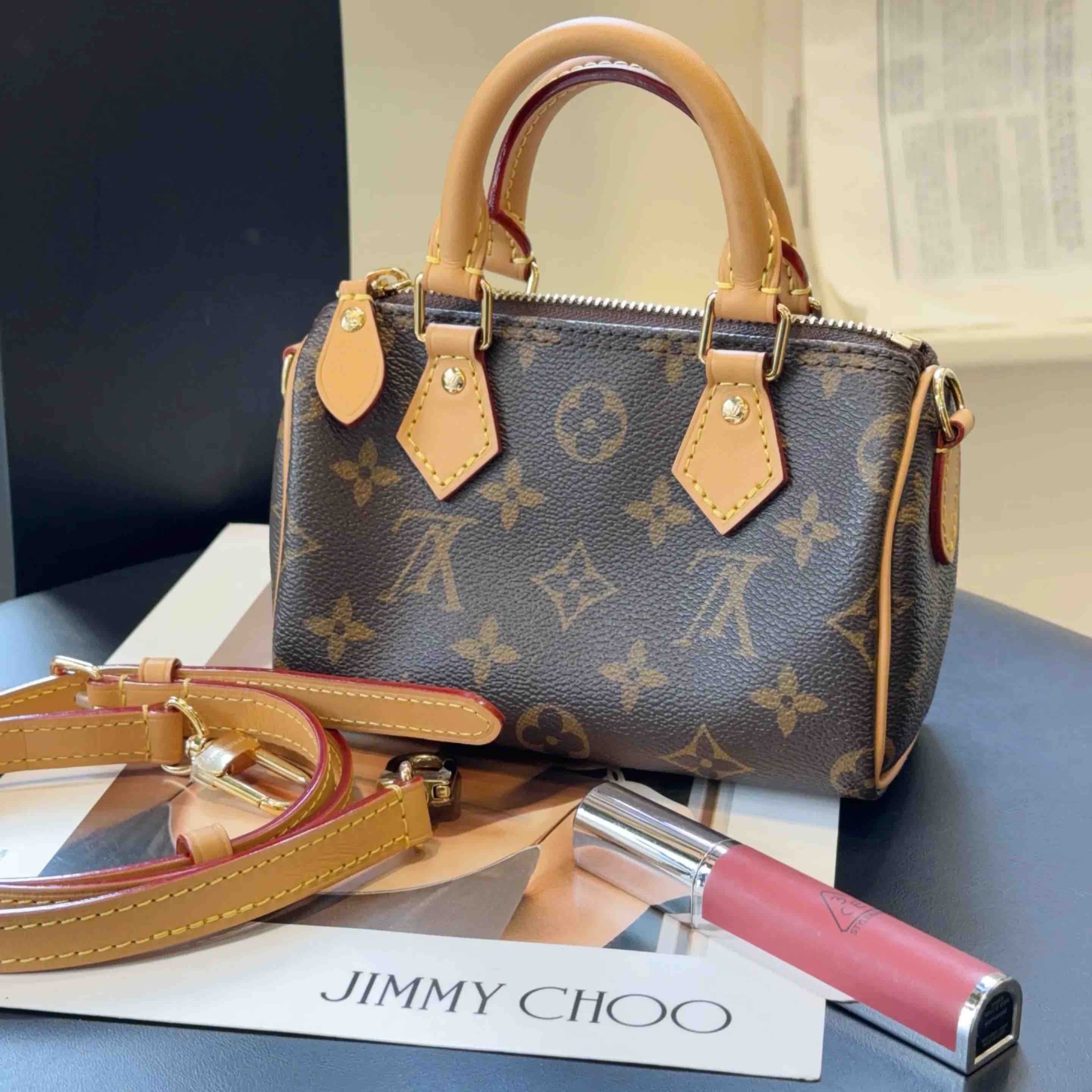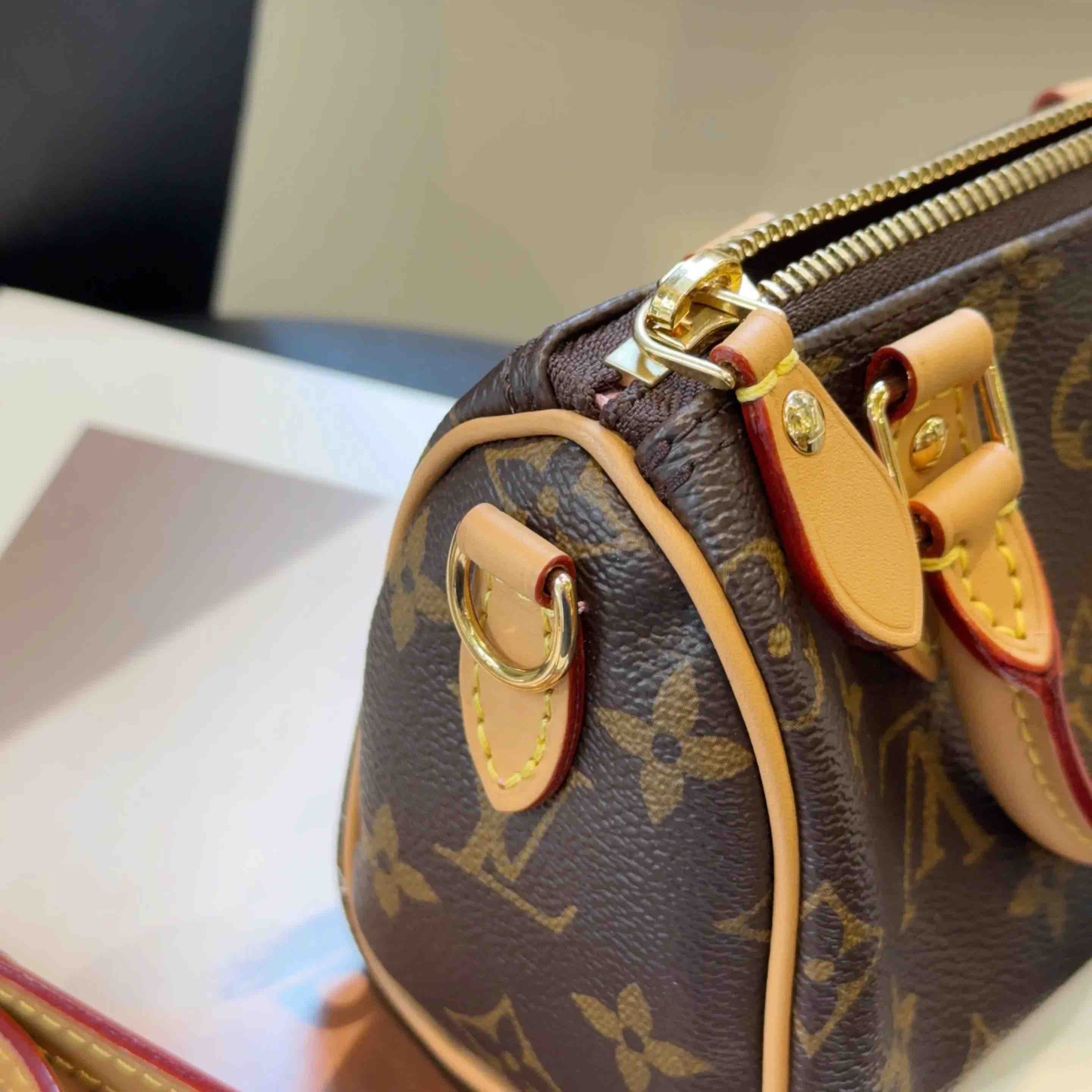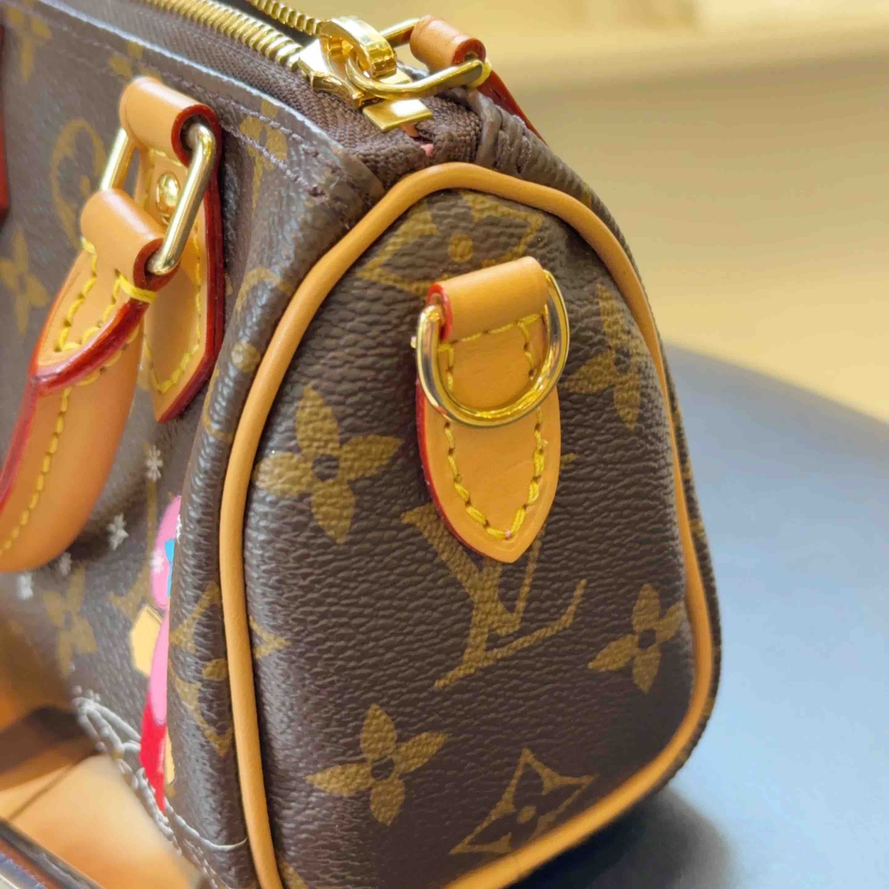 正品二手 LV Vivienne 圣诞限定 speedy nano 老花 斜挎包👜 98新 16*10 配件:肩带。温柔粉色超搭薇薇安