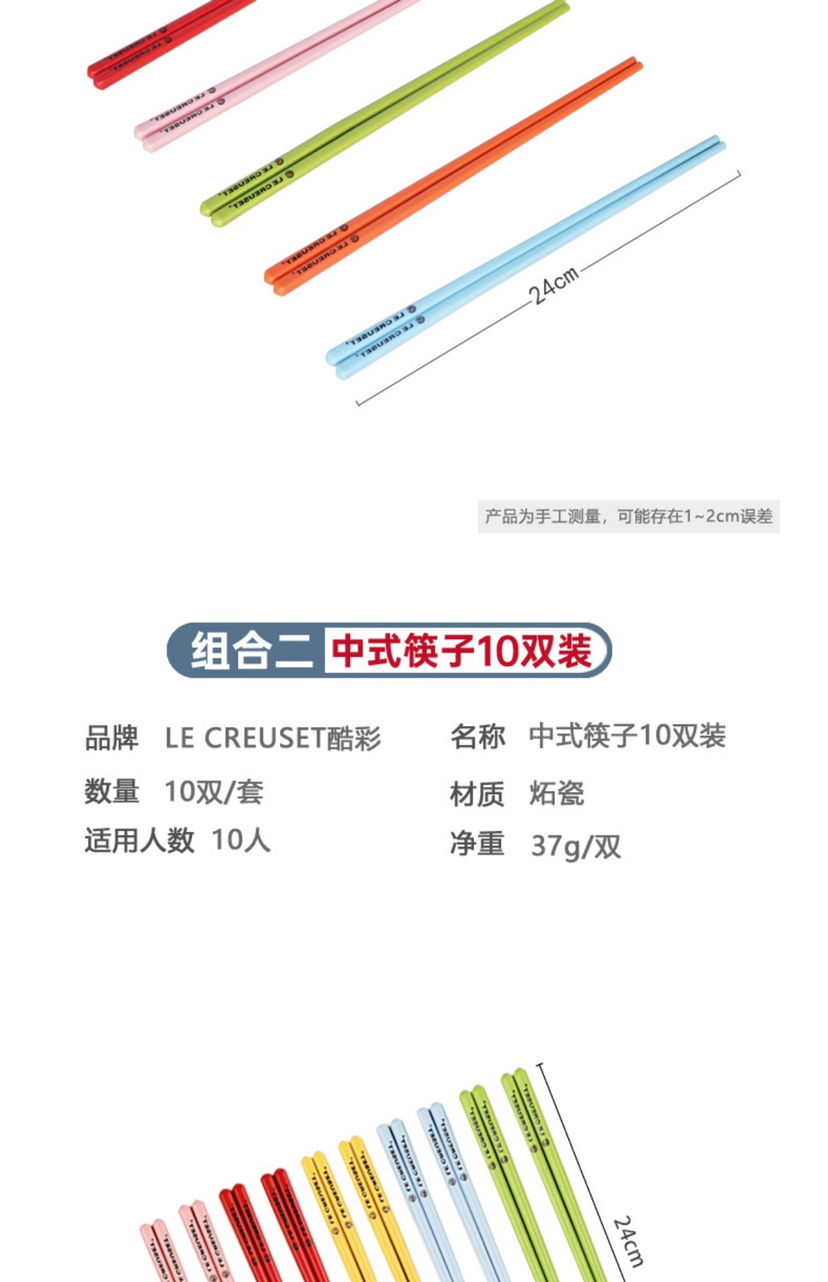 法国LE CREUSET酷彩彩虹筷子家用餐桌礼盒装