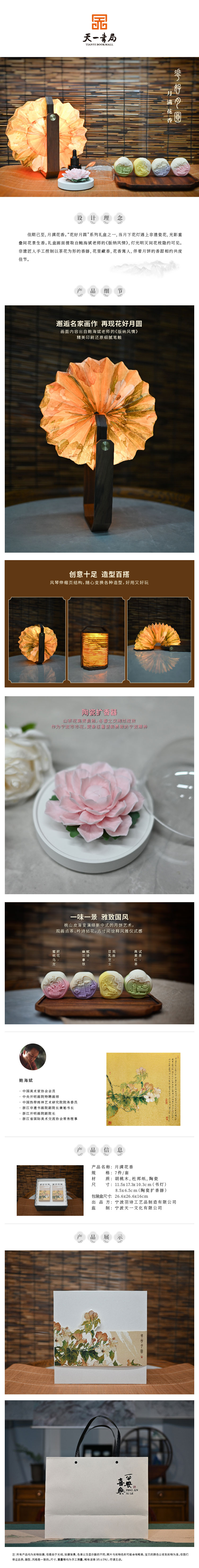 羽诗制造出品 月满花香手提书灯陶瓷茶花扩香器月饼礼盒套装