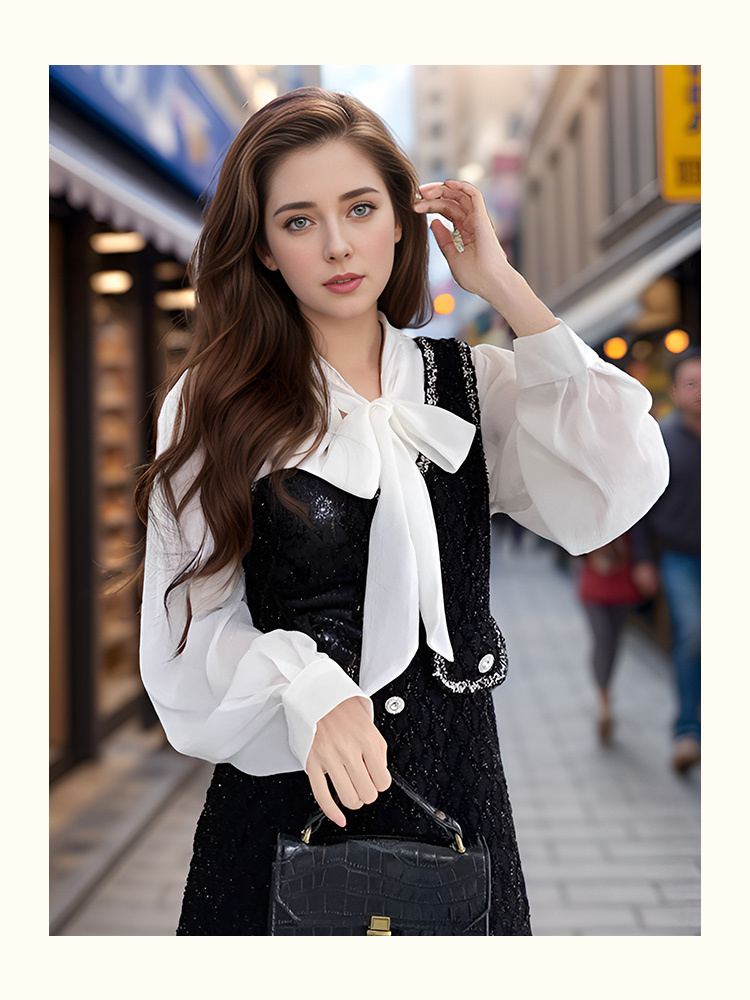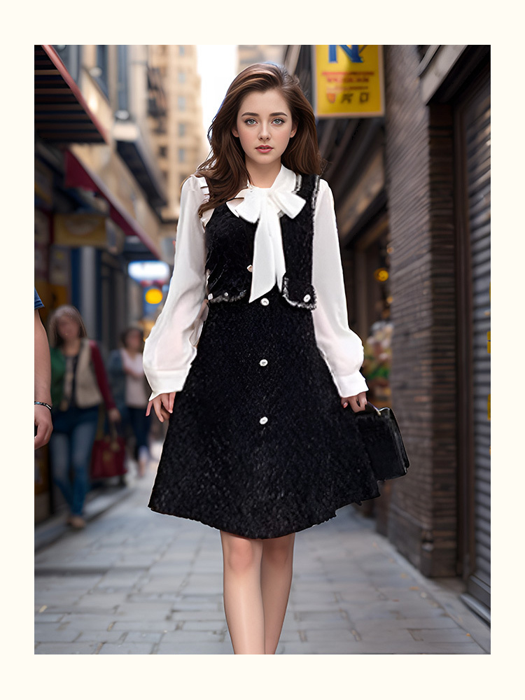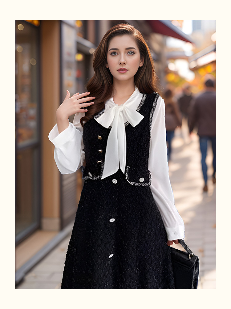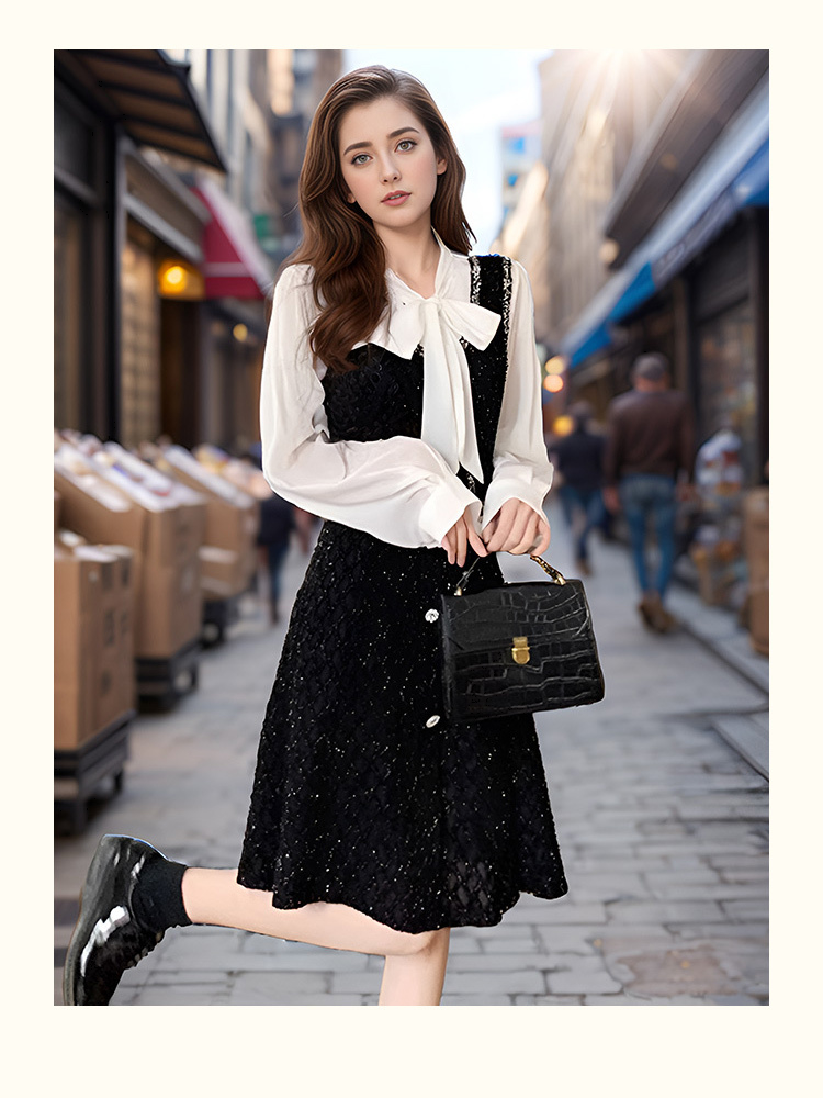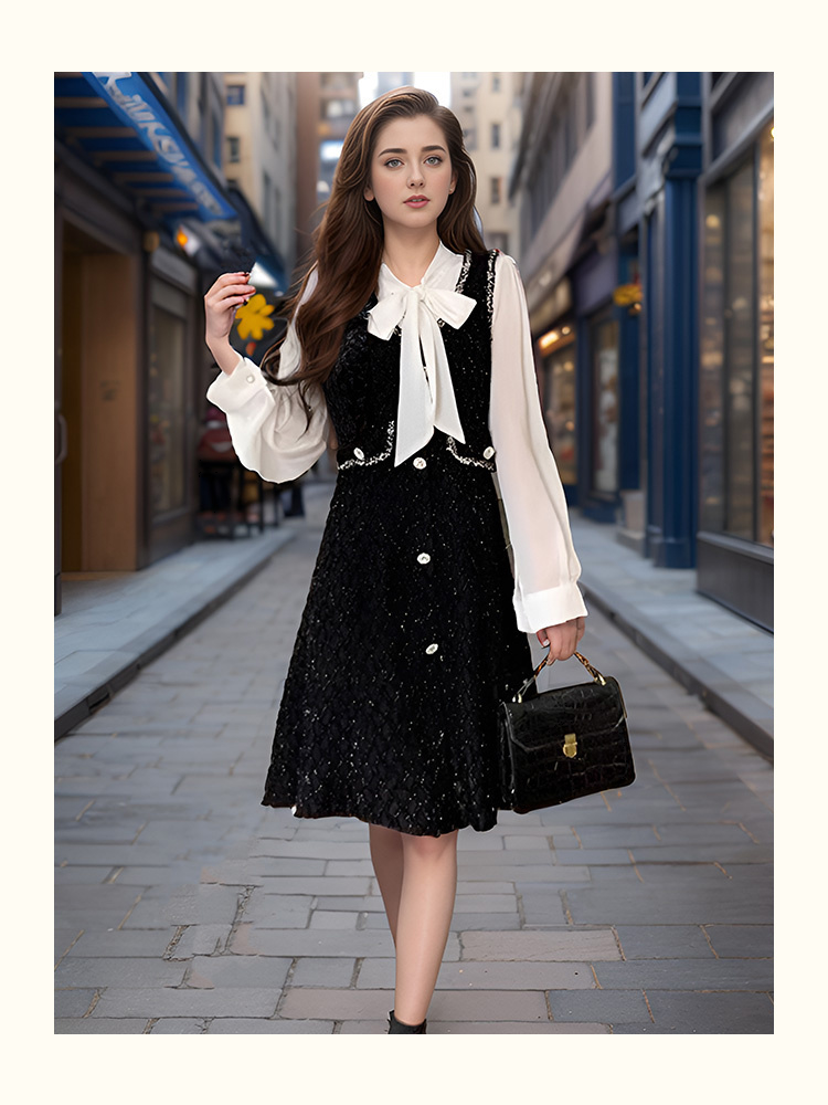 8/21奢姿2024年秋季新款大码女装蝴蝶结衬衫裙子胖妹妹法式撞色连衣裙9943826853