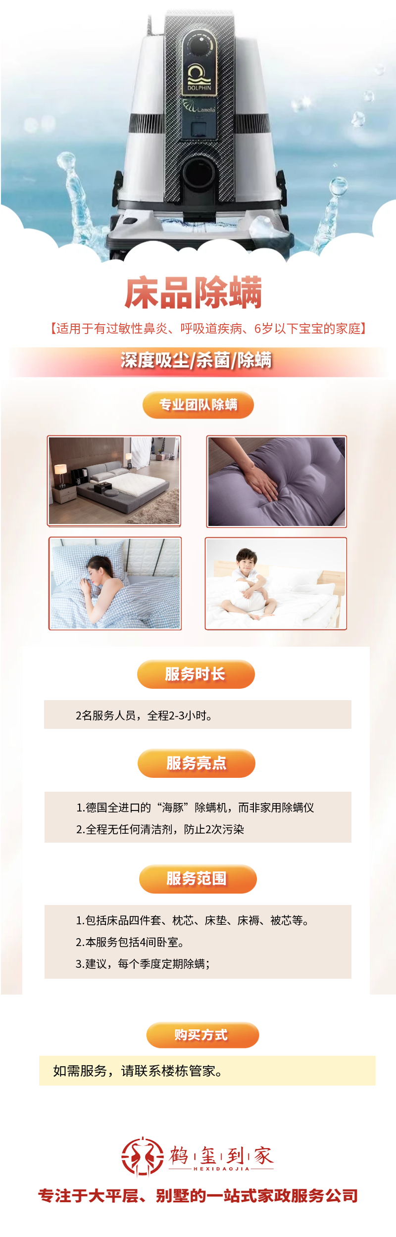 2、德国全进口的“海豚”除螨机,而非家用除螨仪,且全程不使用任何清洁剂,防止2次污染