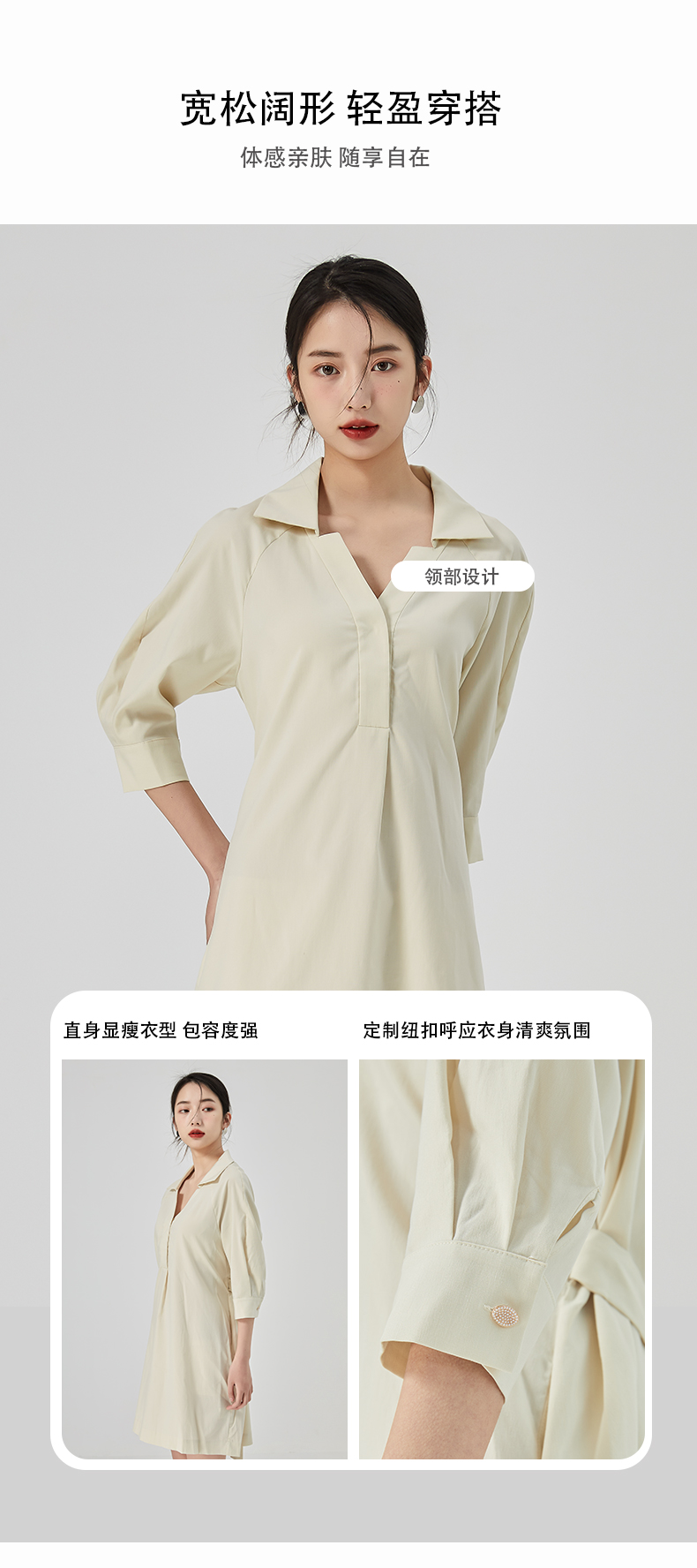 oldcolour衬衫连衣裙2023夏季新款简约通勤宽松中长裙女N22102254