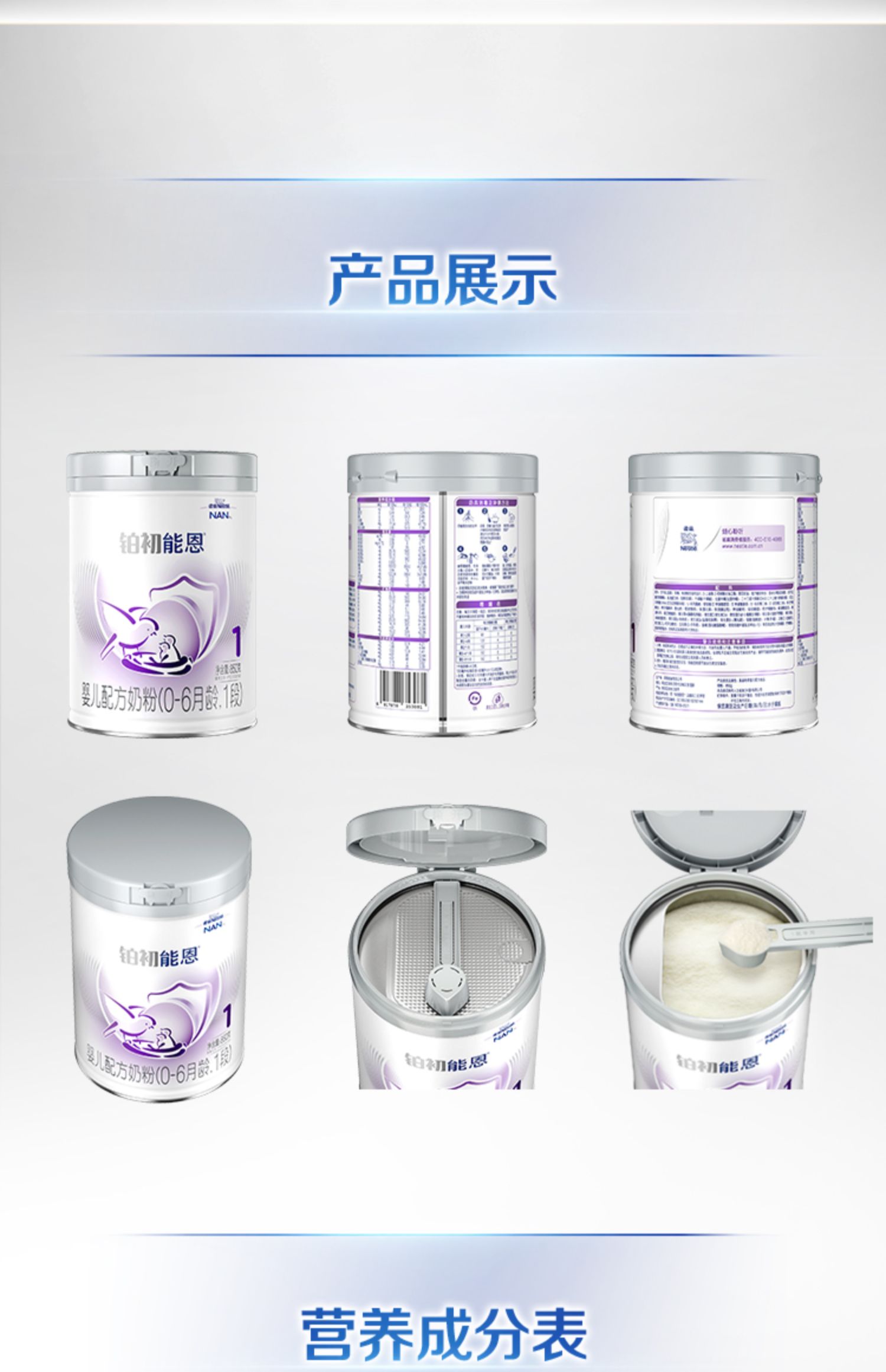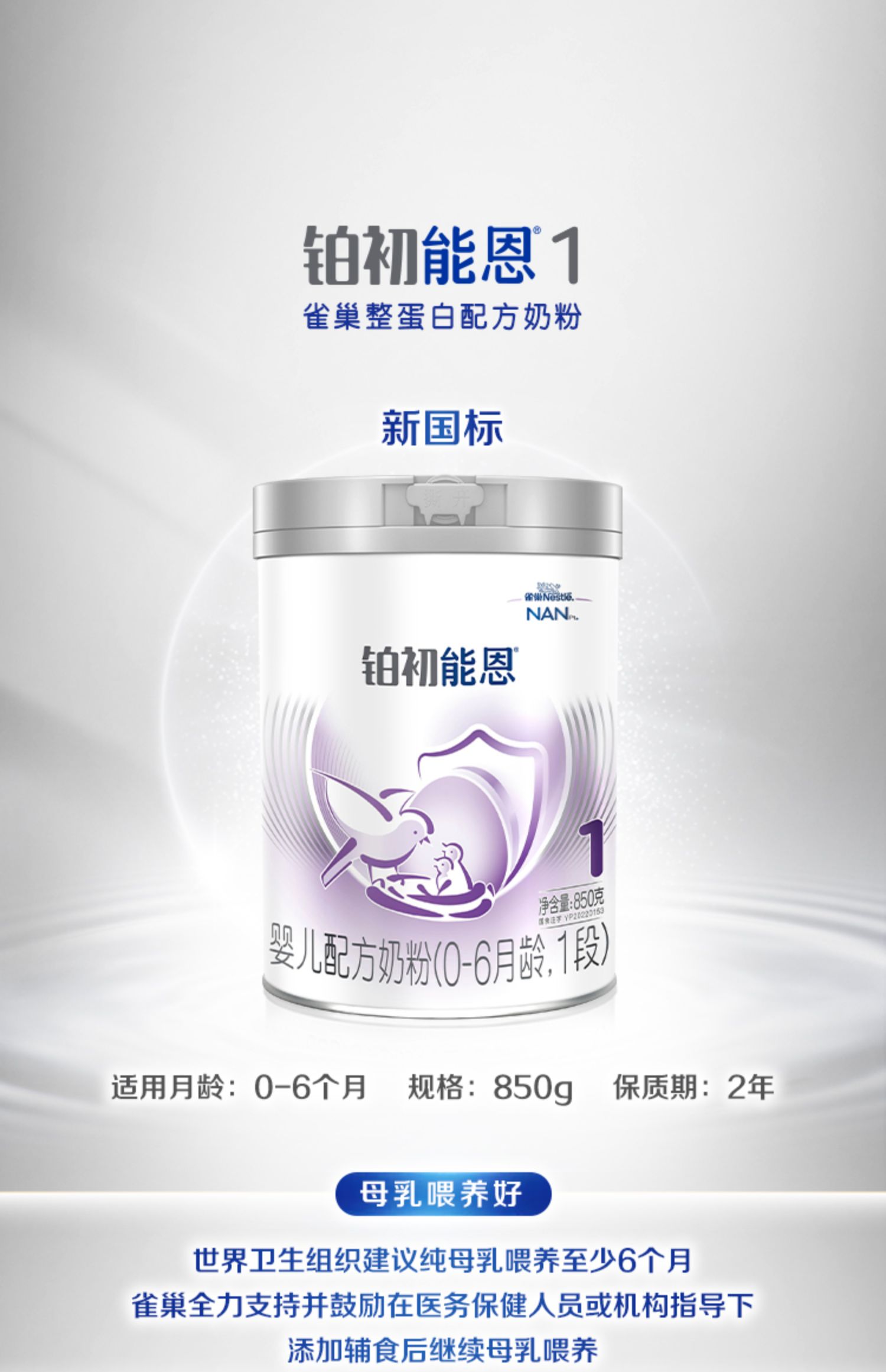 雀巢铂初能恩1段0-6个月适用850克婴幼儿A2奶源配方奶粉/QUC-53159