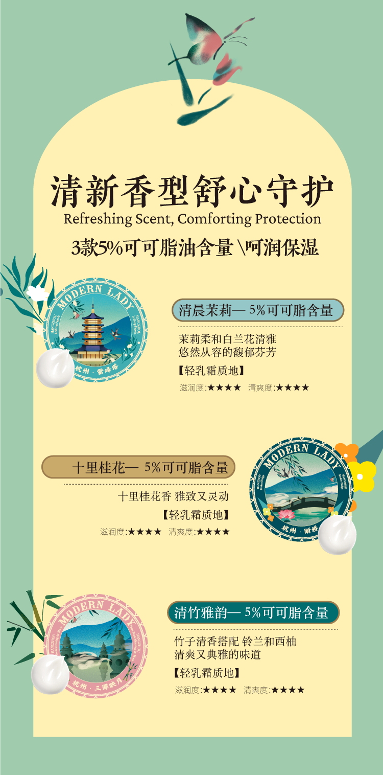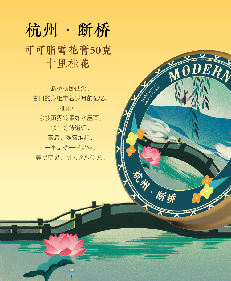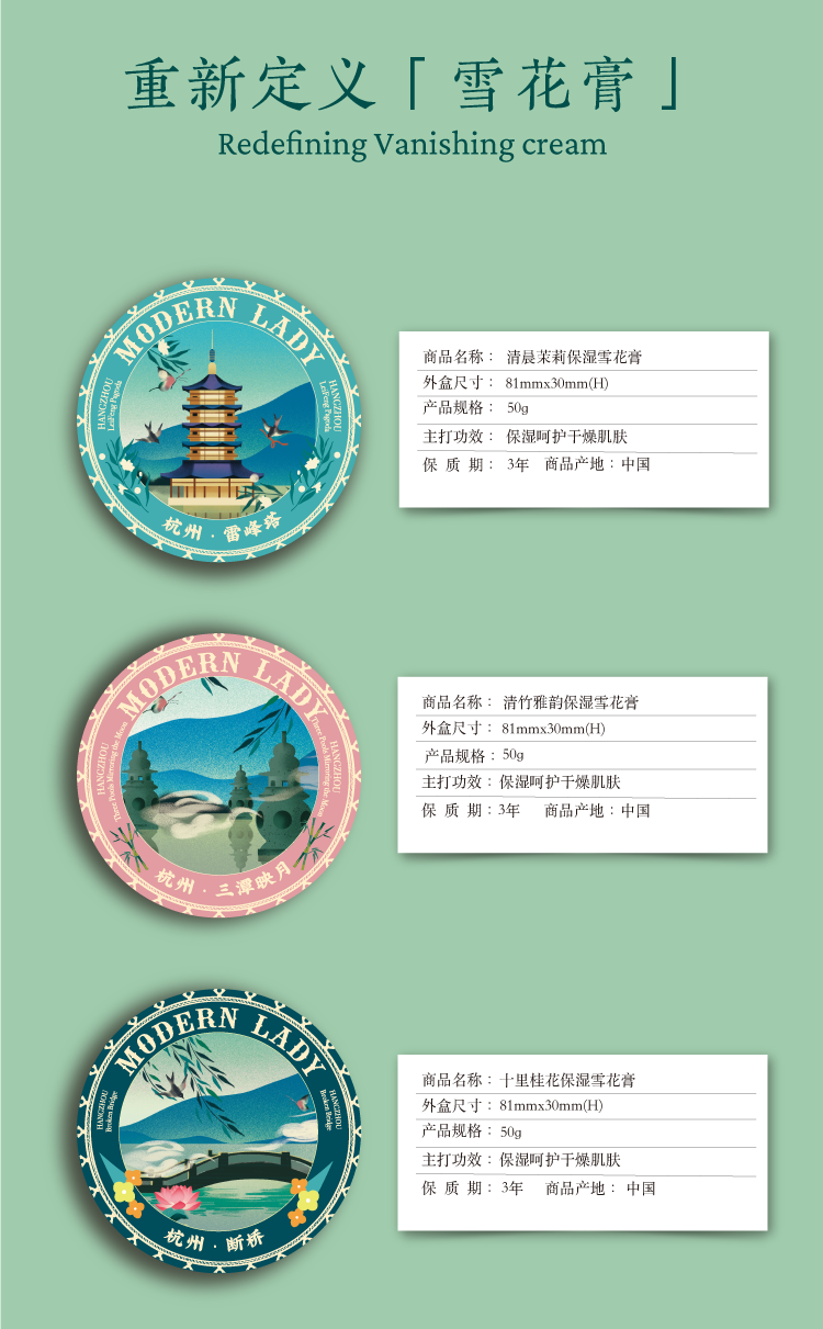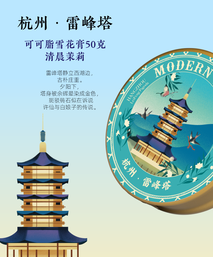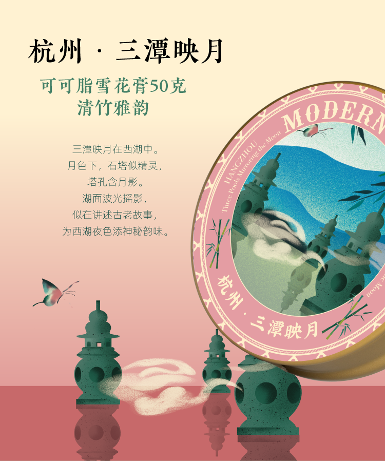 摩登红人杭州城市系列可可脂保湿雪花膏礼盒旅游伴手礼物面霜护手霜身体乳茉莉桂花香清竹淡香