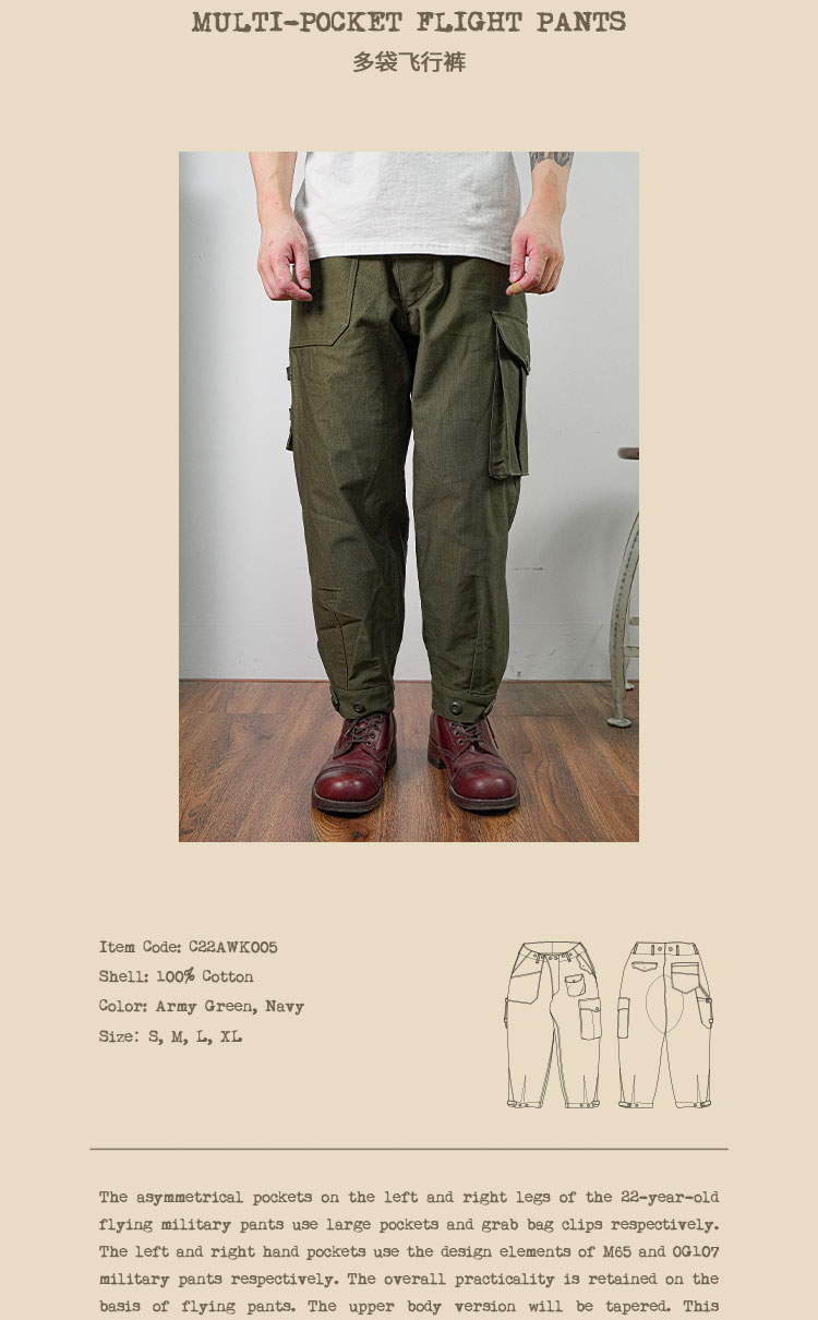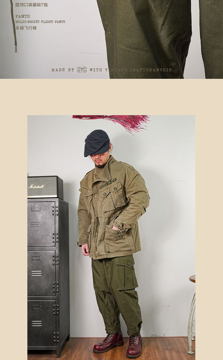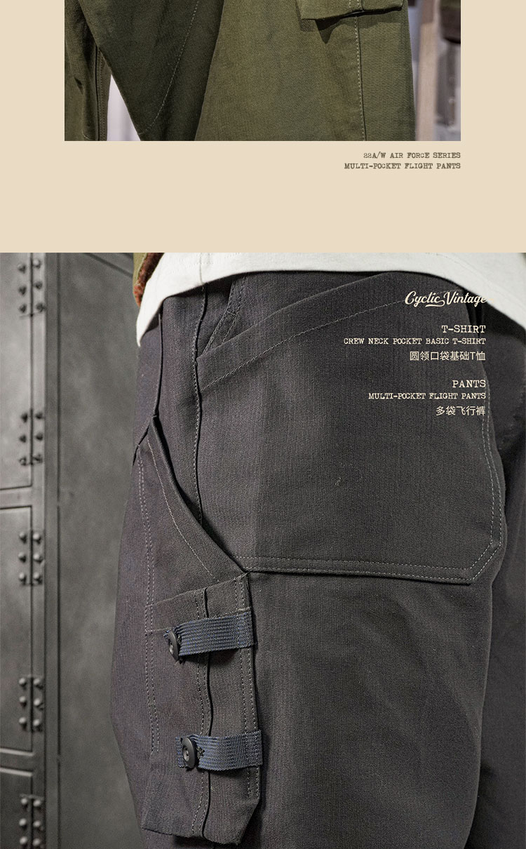 CYCLIC VINTAGE/C23SSK011/重磅水洗做旧多口袋榴弹长裤