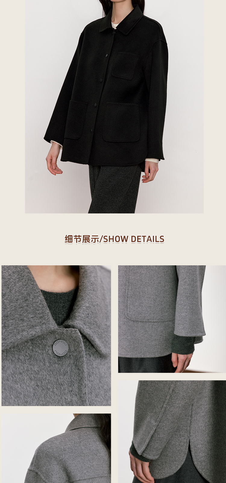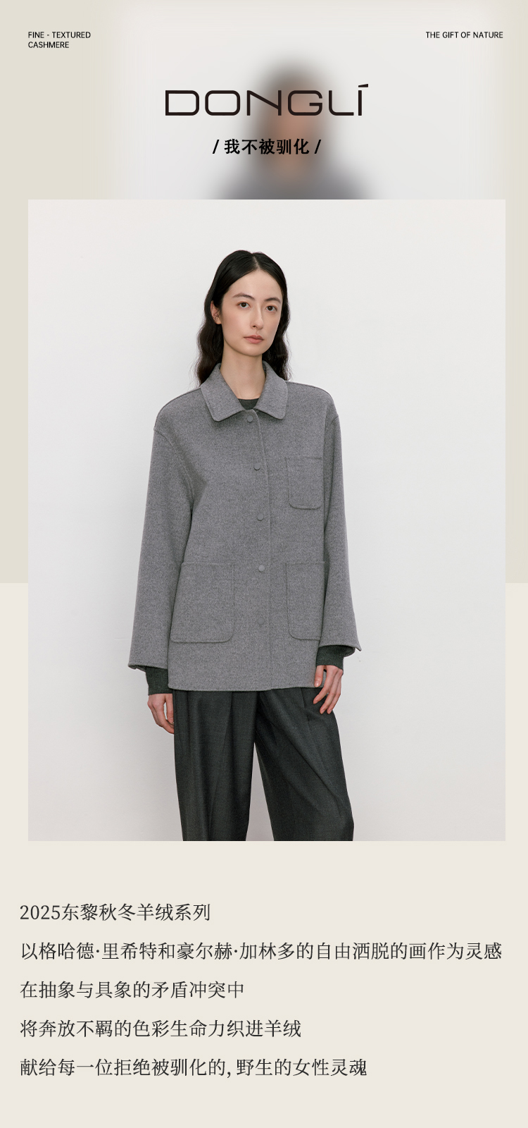 东黎 • 我不被驯化 山羊绒女士秋季翻领短款大衣 5310