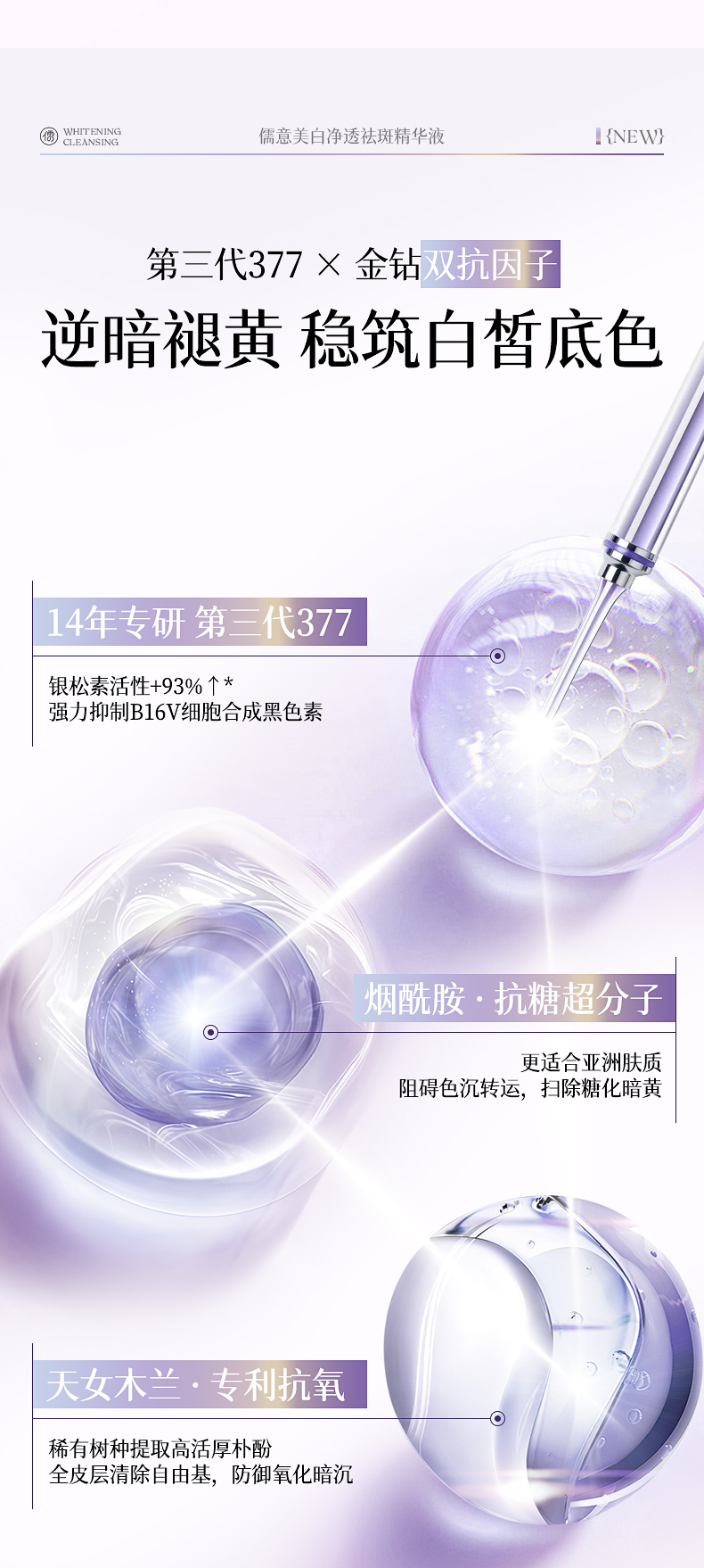 儒意美白净透祛斑精华液30ml 377美白淡斑精华提亮去黄面部抗氧化烟酰胺VC改善暗沉肤色舒缓|儒意官方商城