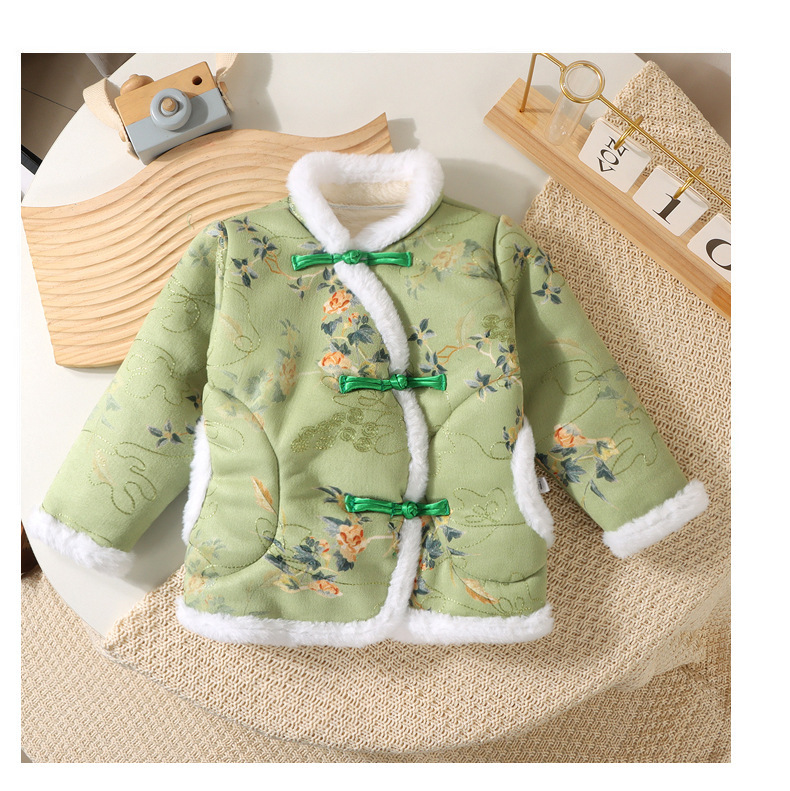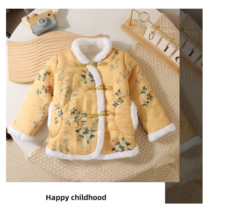 儿童中国风唐装加绒加厚棉袄拜年服冬季喜庆盘口新款国风加厚保暖