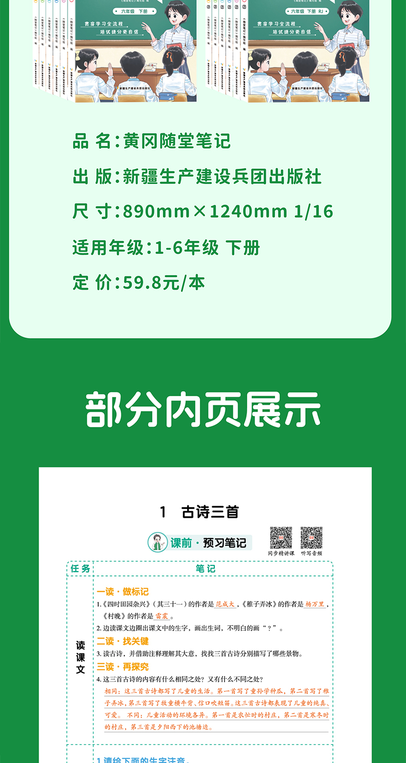 黄冈培优 随堂笔记 语文数学 英语1-6年级 同步教材单元单点归类