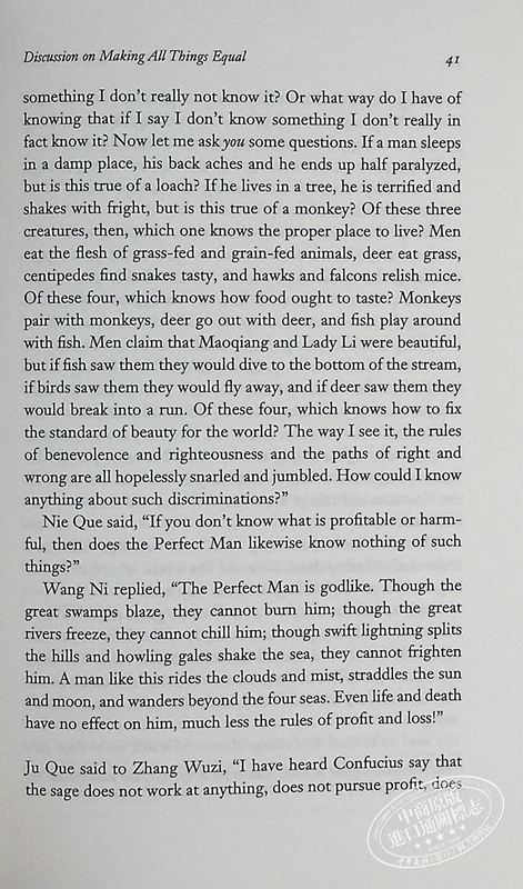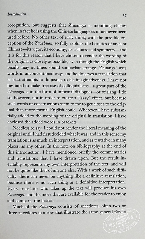 人类只有居于道(自然之道)并居于其统一之中,才能获得真正的生与死的幸福和自由。 这是哲学的中心原则,由庄子(公元前 369?-286?)这个人或一群人在同名文本中所拥护。 为了获得自由,个人要放弃对与错的严格区分,并遵循不以利益或奋斗为动机的行动方针。 当一个人不再评判事件的好坏时,人为的痛苦就会消失,自然的痛苦就会成为生活的一部分。 庄子通过幽默、寓言、轶事等方式阐释了这种神秘的哲学,用不合逻辑甚至无稽之谈来阐明超越一般逻辑界限的真理。 《庄子》构思大胆、构思巧妙,摆脱了历史时期和社会的束缚,为不同时代的人们提供了精神滋养。 作为中国传统中备受推崇的文本之一,《庄子》每年都会被成千上万的英语学者阅读,但迄今为止,只有韦德-贾尔斯罗马化的版本。 伯顿·沃森在本书中对拼音的转换使文本符合中国学者以及越来越多的其他学者的阅读方式。
