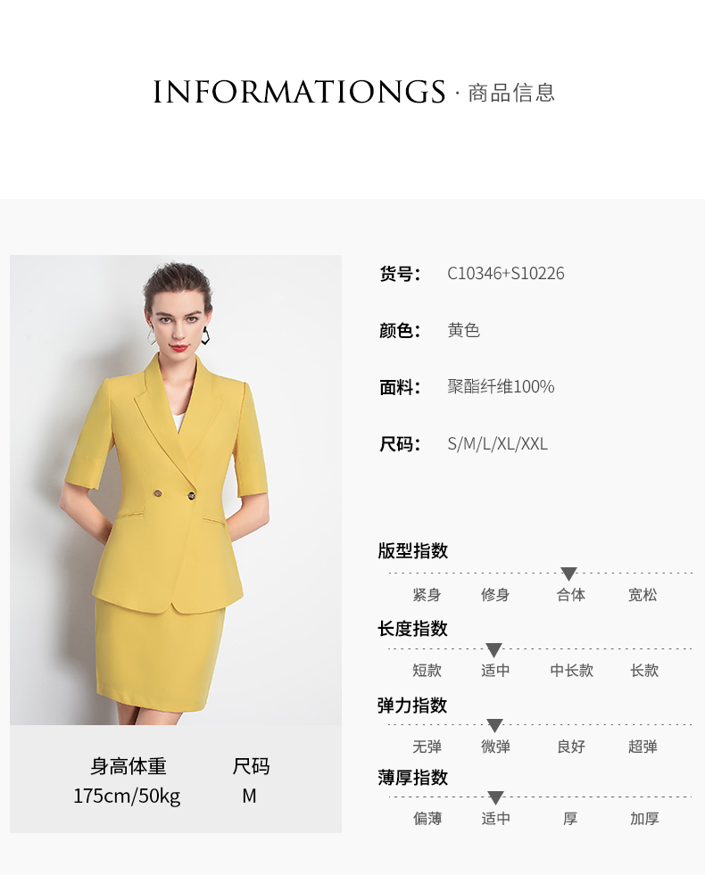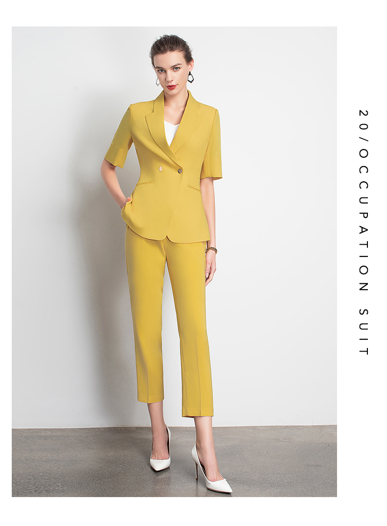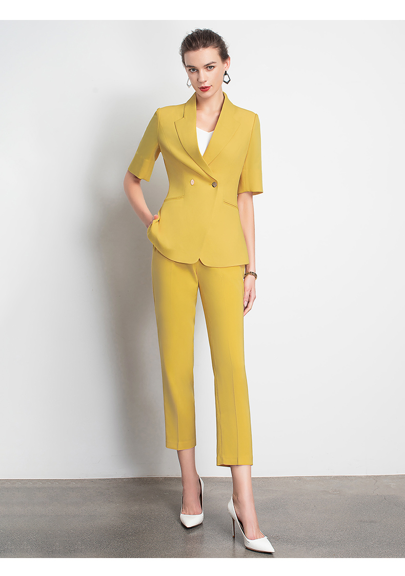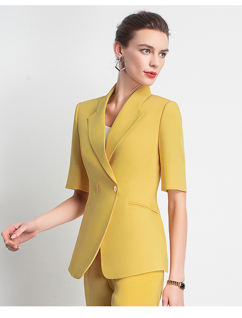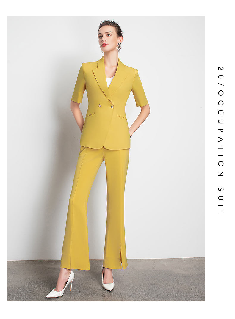 IWY/新品女士西装西裤半裙黄色套装职业装气质休闲名媛C10346+P3P1S10226