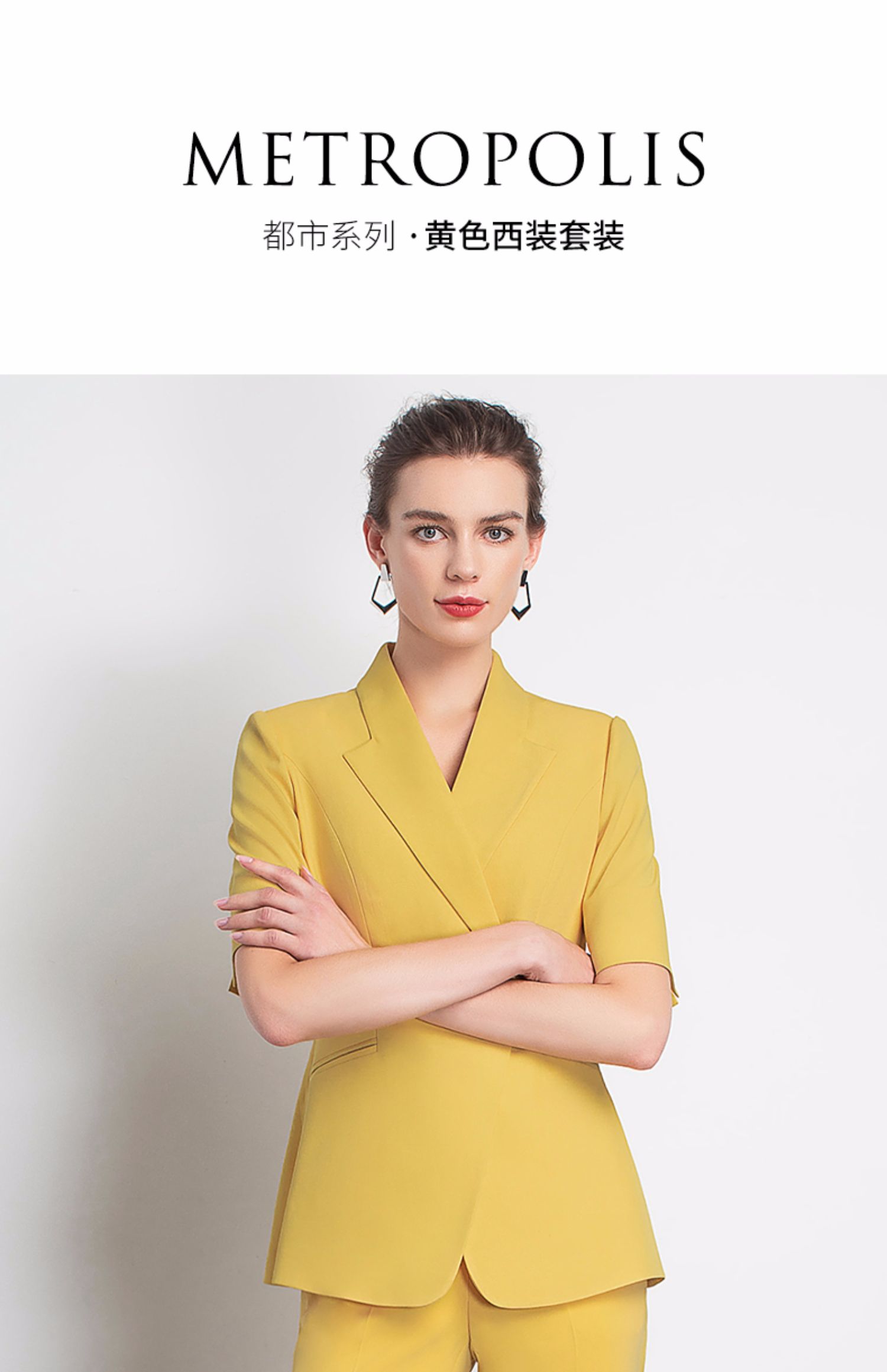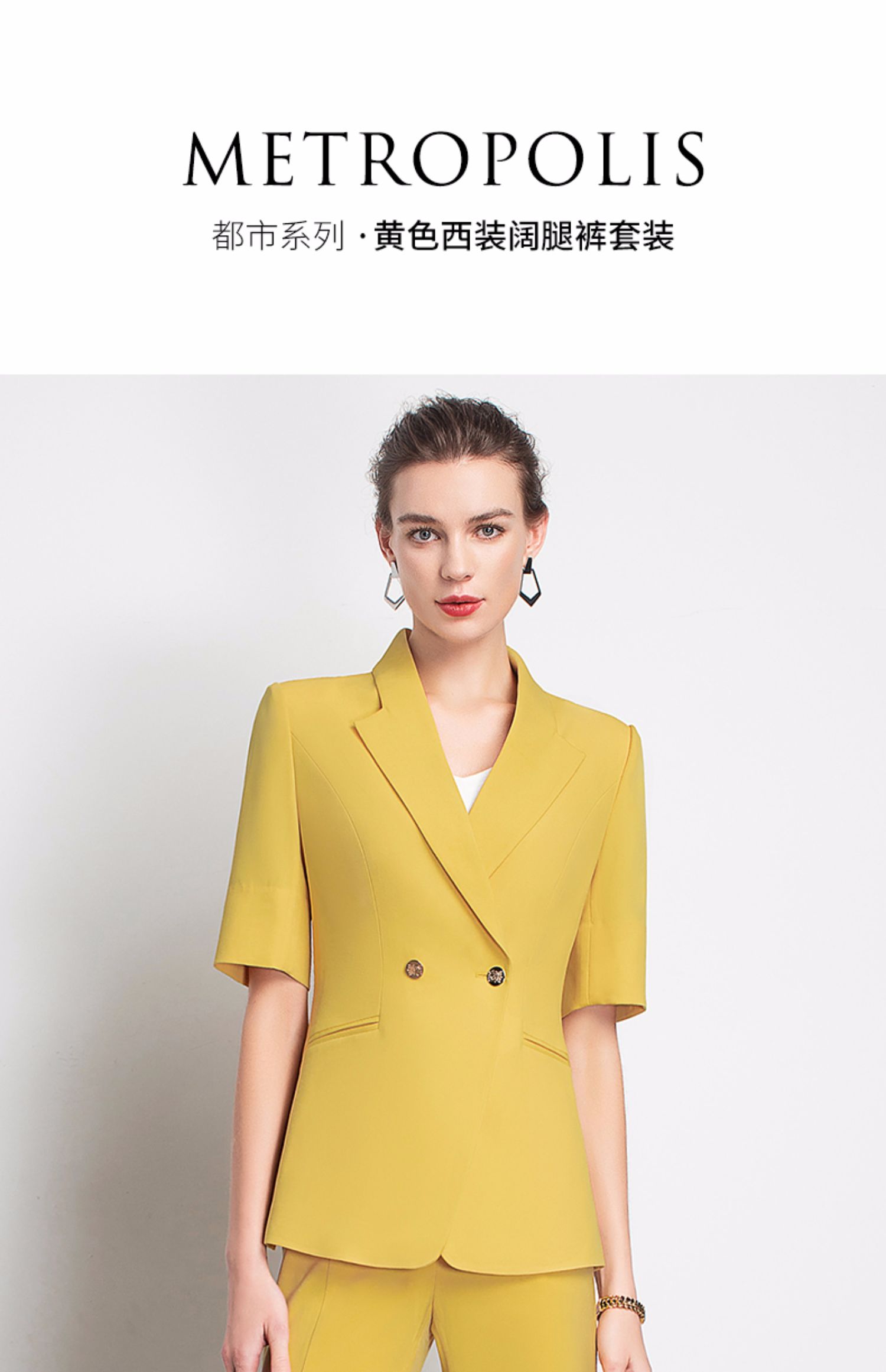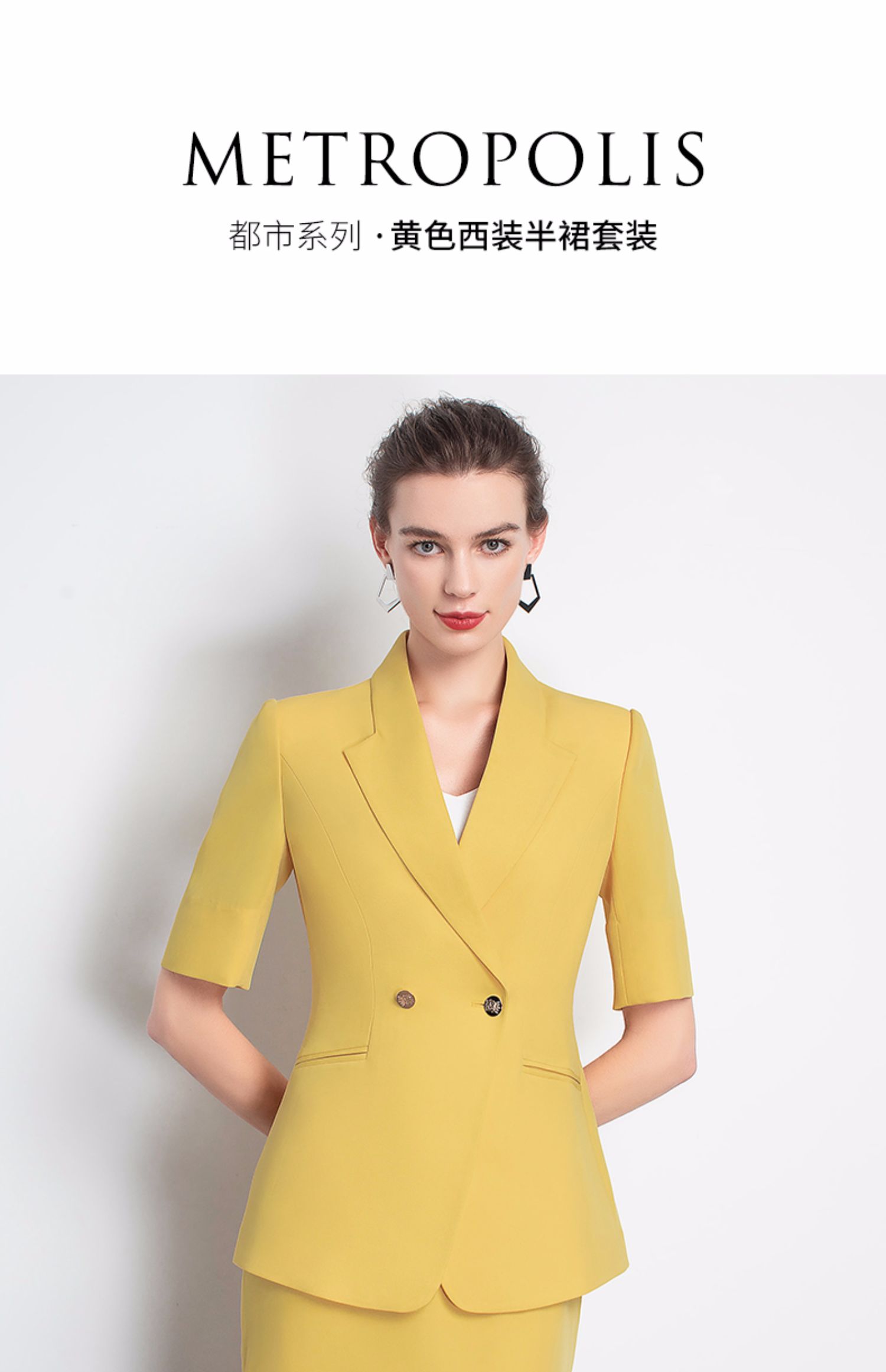 IWY/新品女士西装西裤半裙黄色套装职业装气质休闲名媛C10346+P3P1S10226
