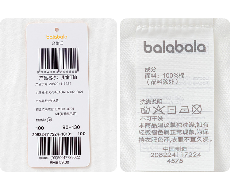 巴拉巴拉童装T恤儿童短袖新款男童纯棉夏装女童上衣简约百搭