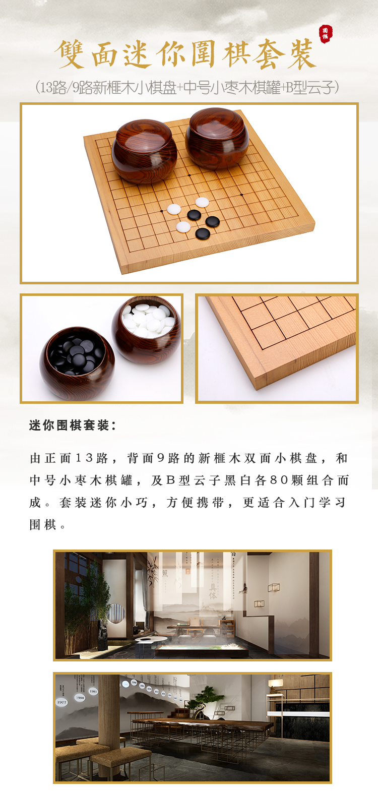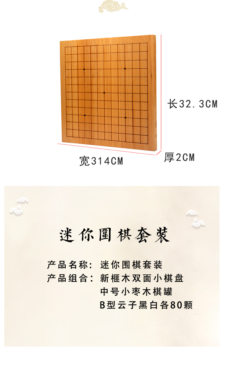迷你围棋套装双面新榧木小棋盘和中号小枣木棋罐B型云子