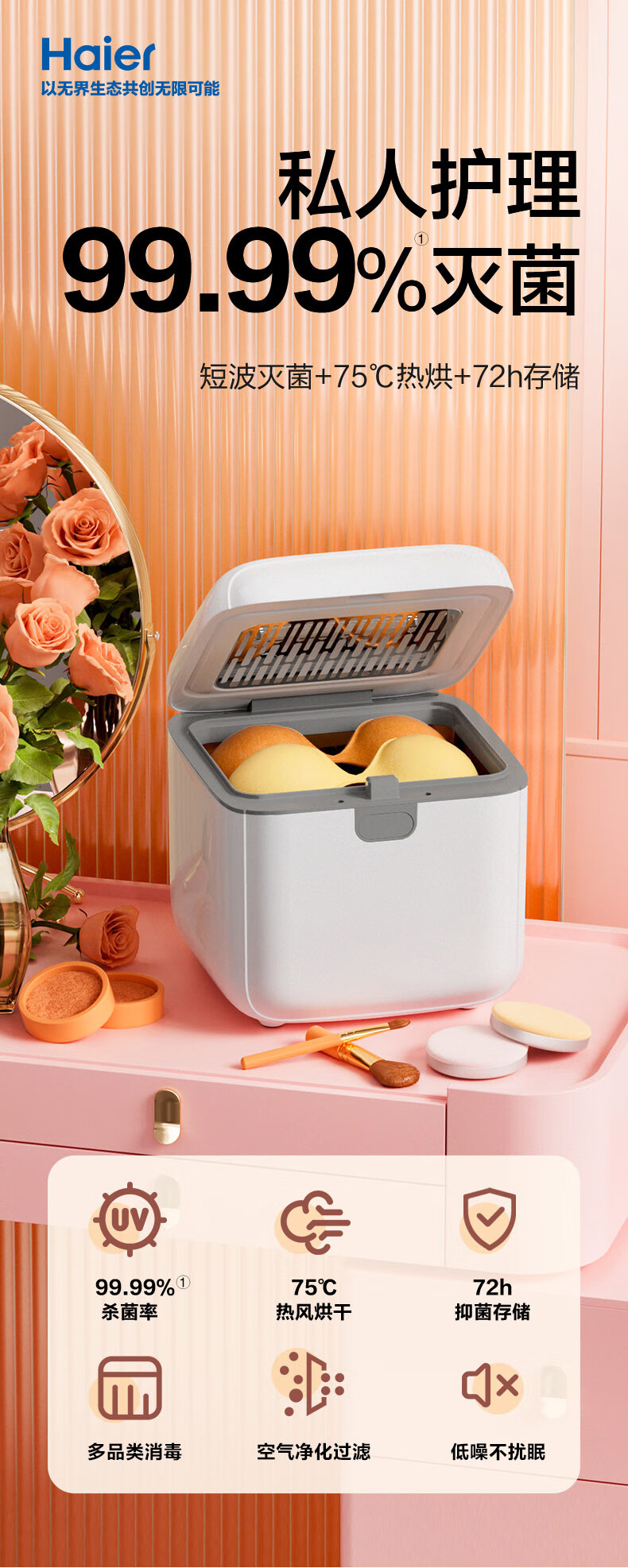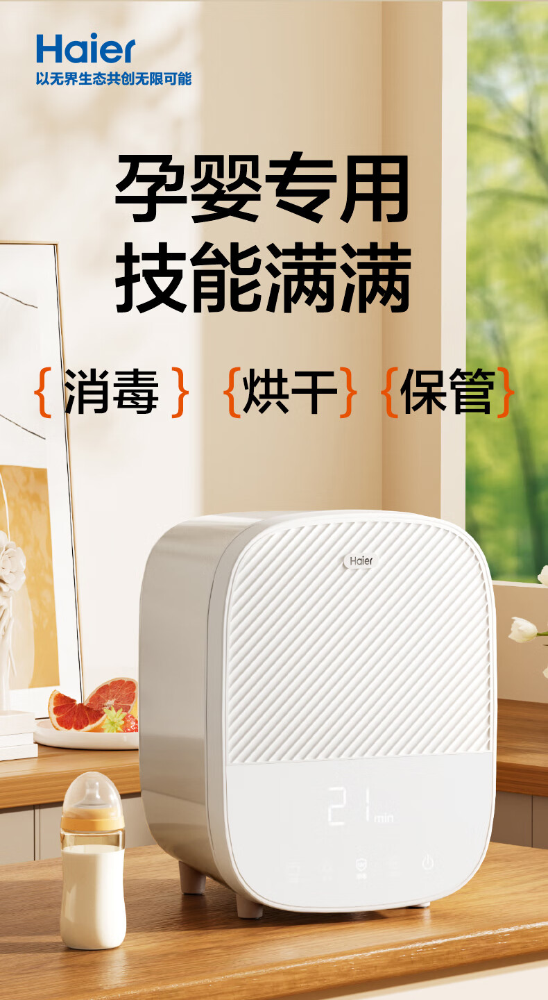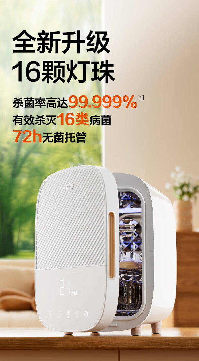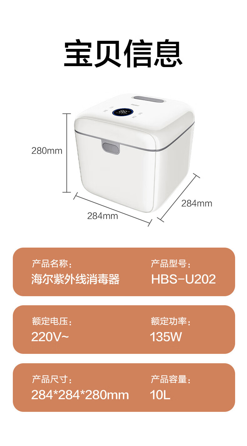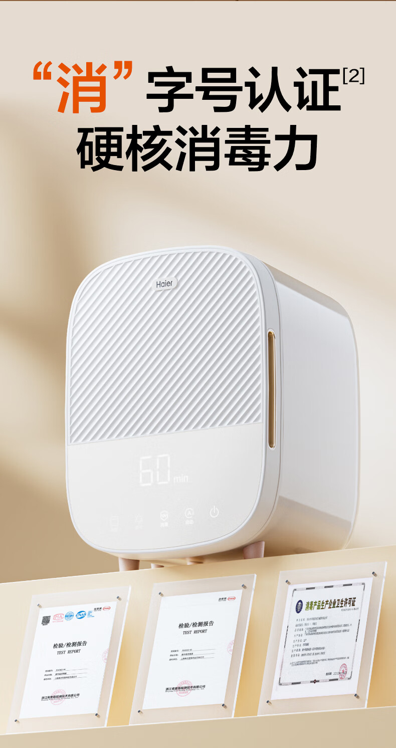海尔(Haier)内衣内裤消毒机 婴儿奶瓶消毒带烘干机二合一内衣裤紫外线杀菌玩具用品碗筷消毒烘干器 HBS-U202(升级版 双灯管 触控屏)