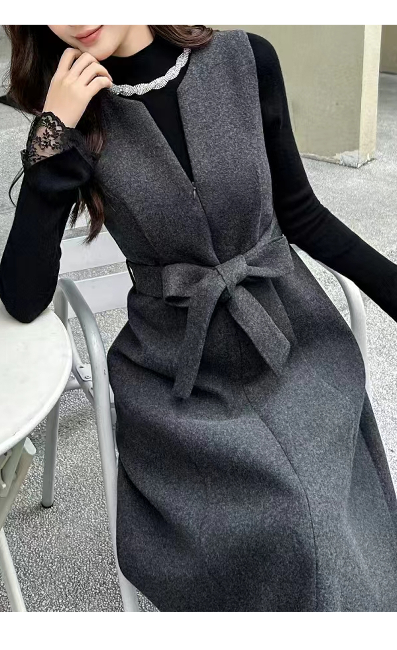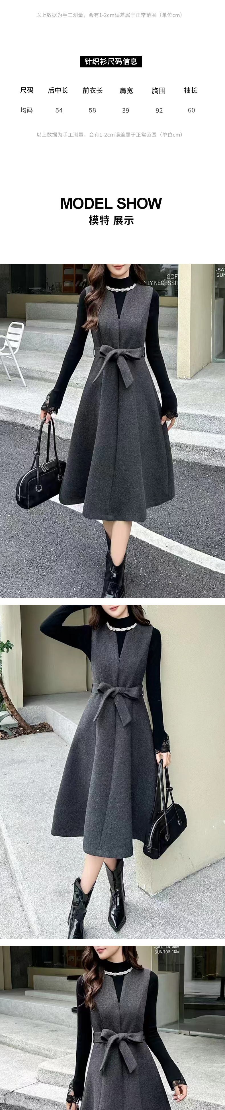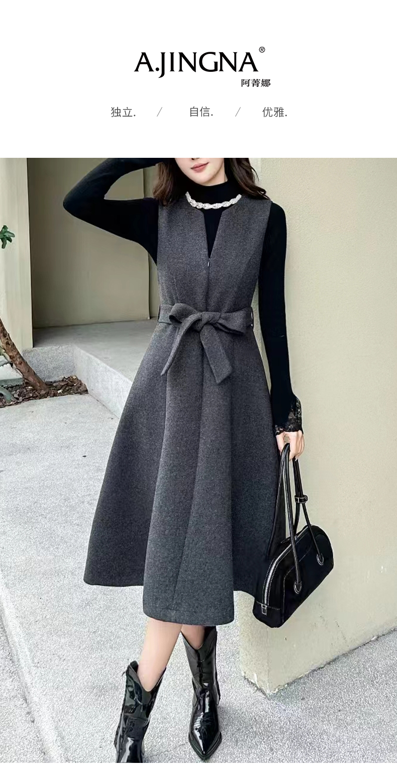 【黄金分割】阿菁娜冬季新款法式背心裙套装羊毛A字摆遮胯显瘦黄金分割线设计一衣多穿优雅F30D230005