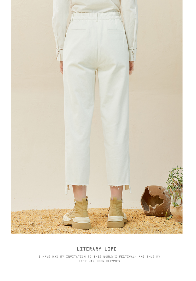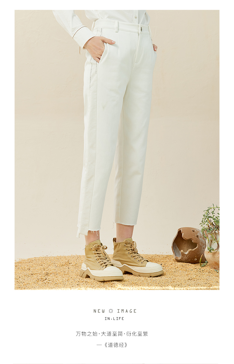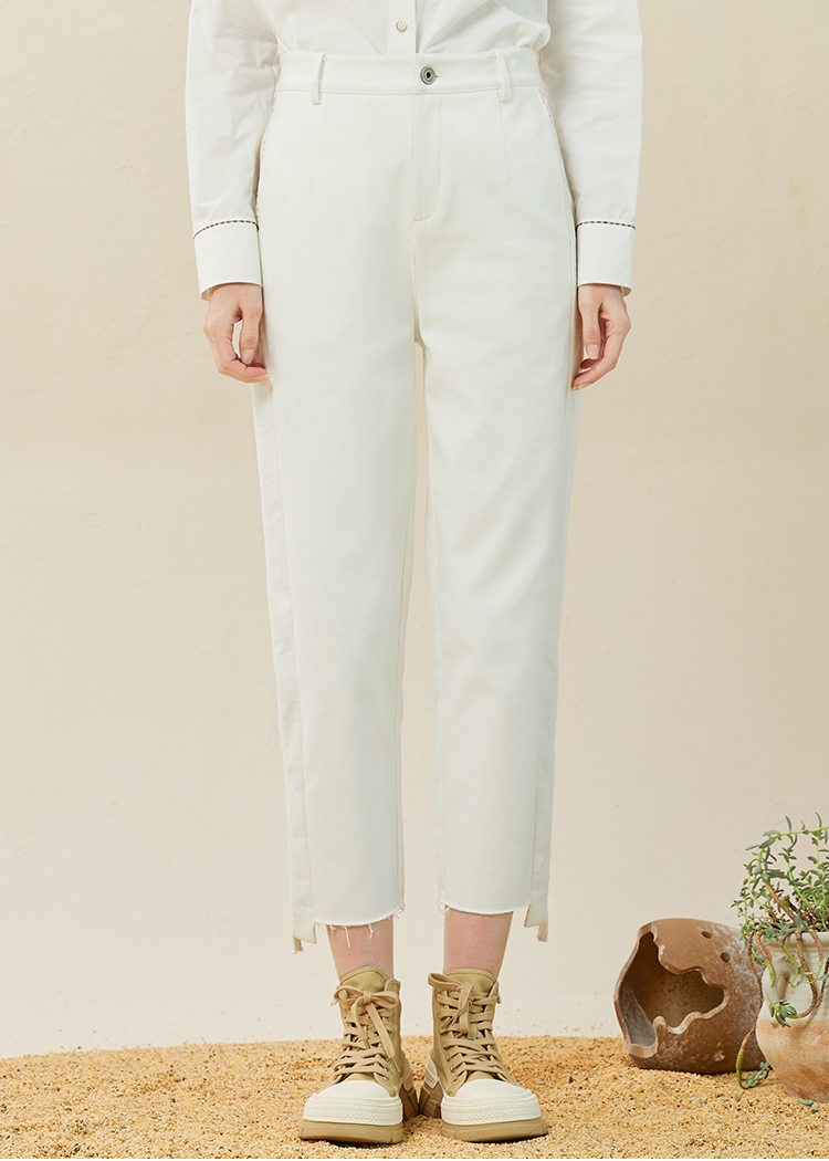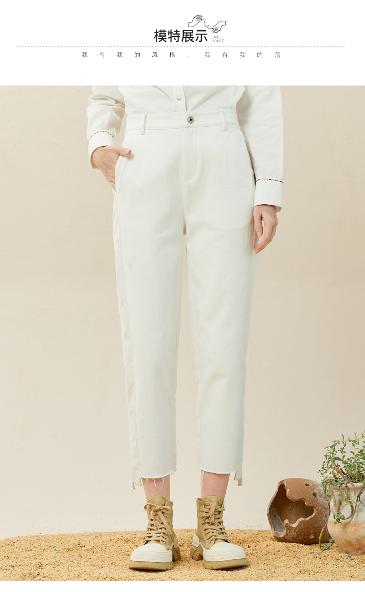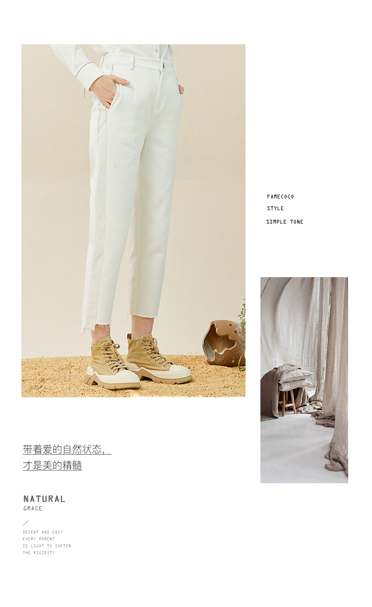 Famecoco范可儿休闲烟管裤女冬直筒不对称裤子拼接设计感F228GA013