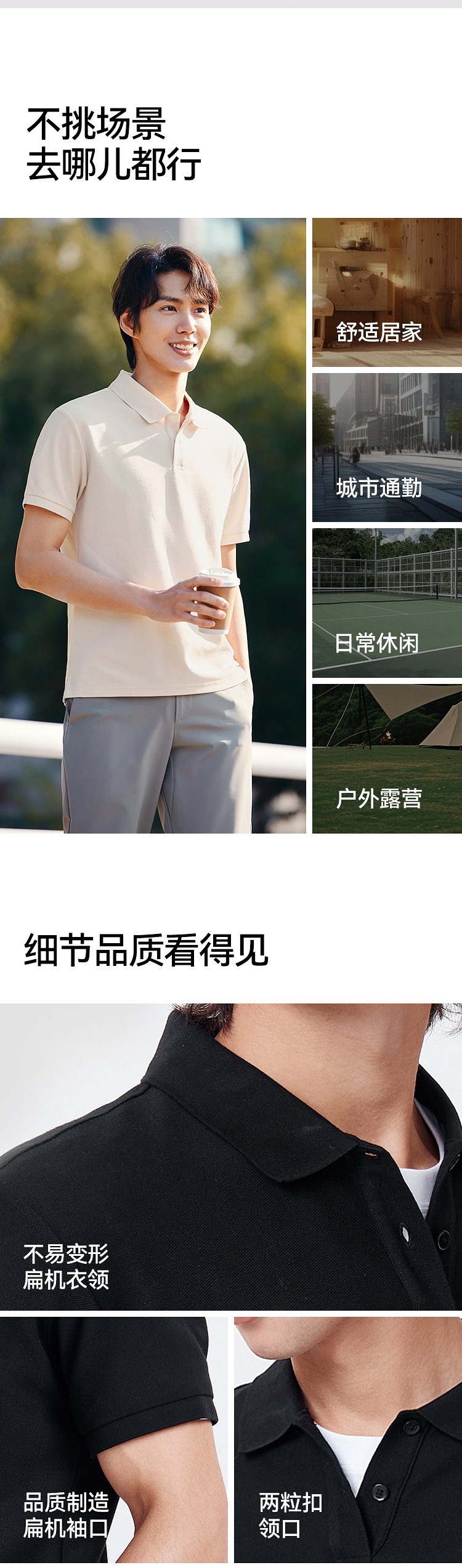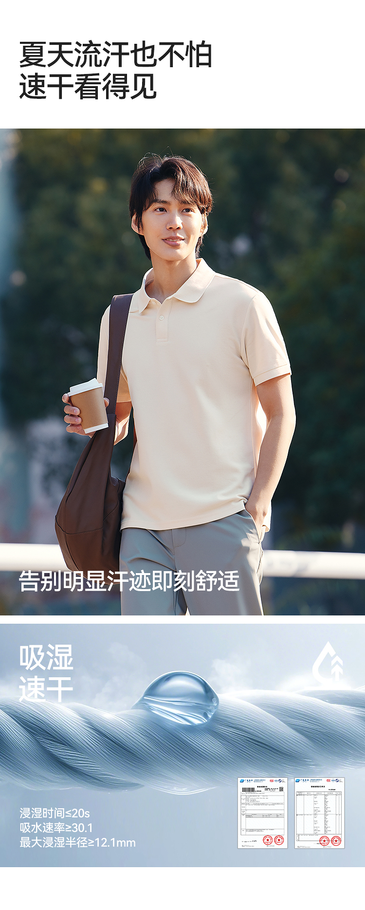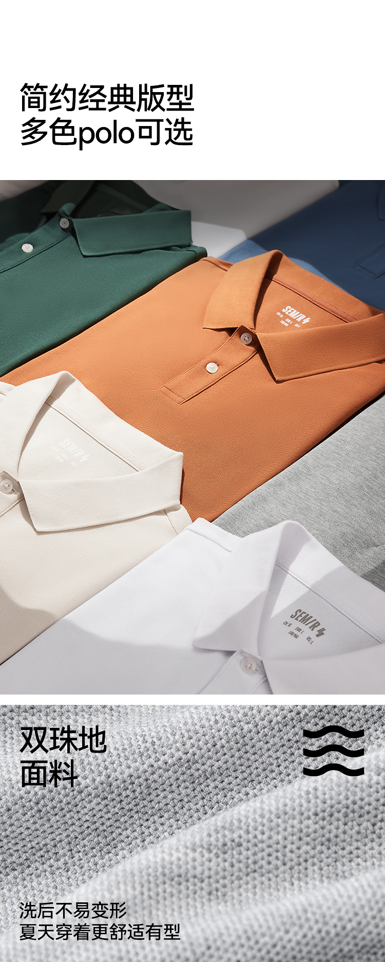 森马POLO衫男2024夏新款吸湿速干修身短袖上衣基础纯色