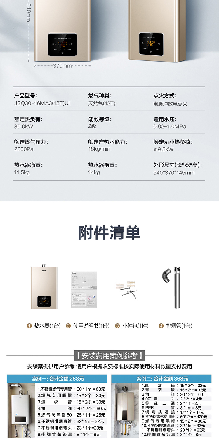 海尔(Haier)热水器JSQ30-16MA3(12T)U1