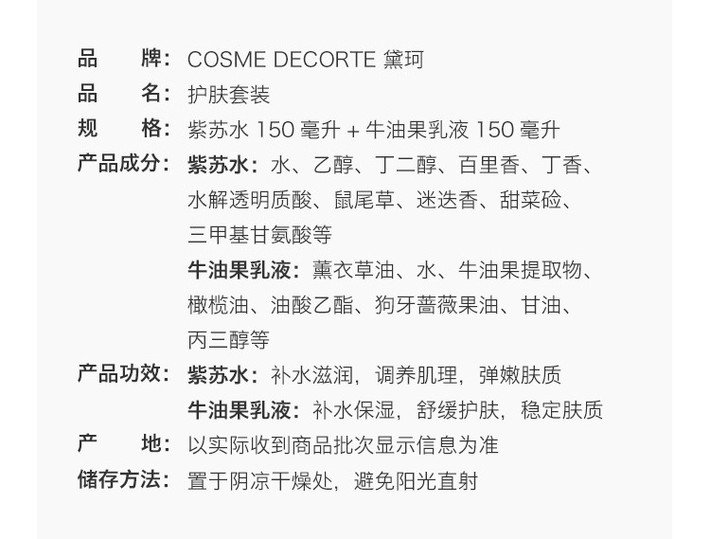 【跨境】COSME DECORTE黛珂水乳 新版 紫苏水150ml+牛油果乳液150ml 保湿补水舒缓祛痘混油皮(效期22年12月生产/黛珂效期5年介意勿拍)