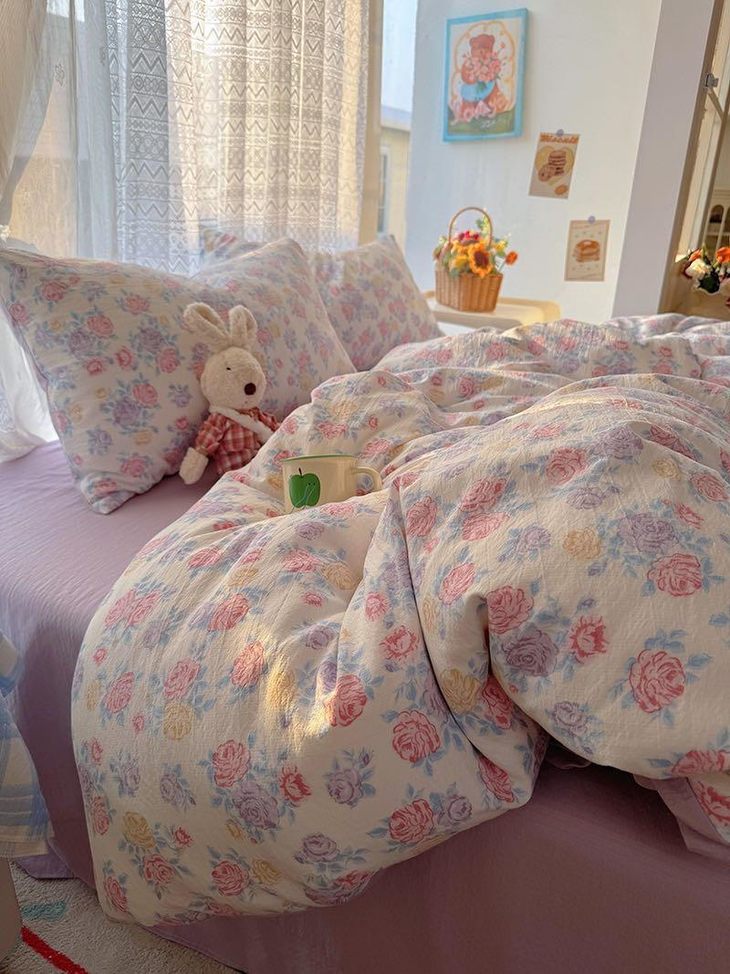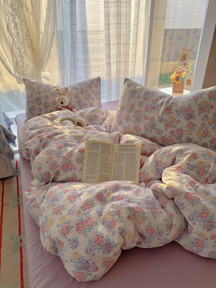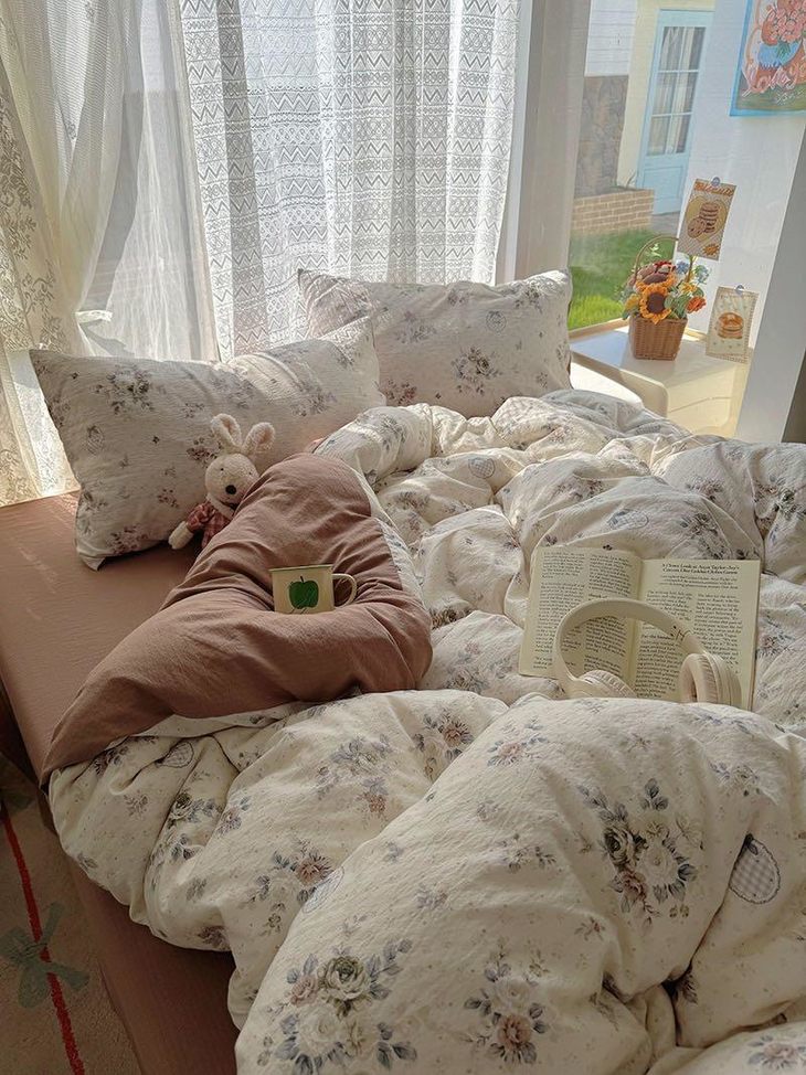 1️⃣1️⃣恋爱资讯 把碎花浪漫铺满床💐 阳光漫进来,小兔、书本、耳机组起温柔局。 在这方小窝,像把春日花园的甜揉进生活,每一寸褶皱里,都藏着不想说破的慵懒与欢喜,窝着就想和美好多黏一会儿~