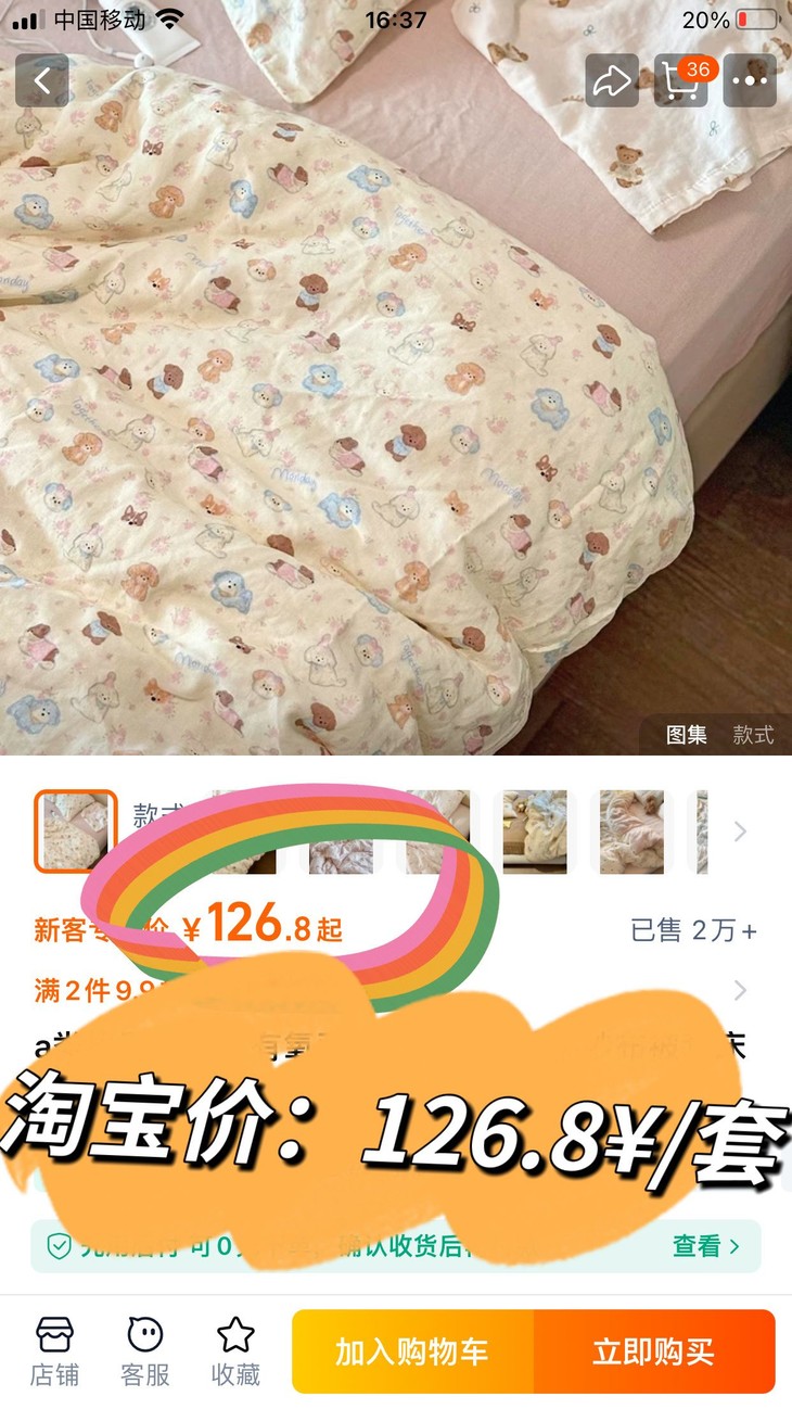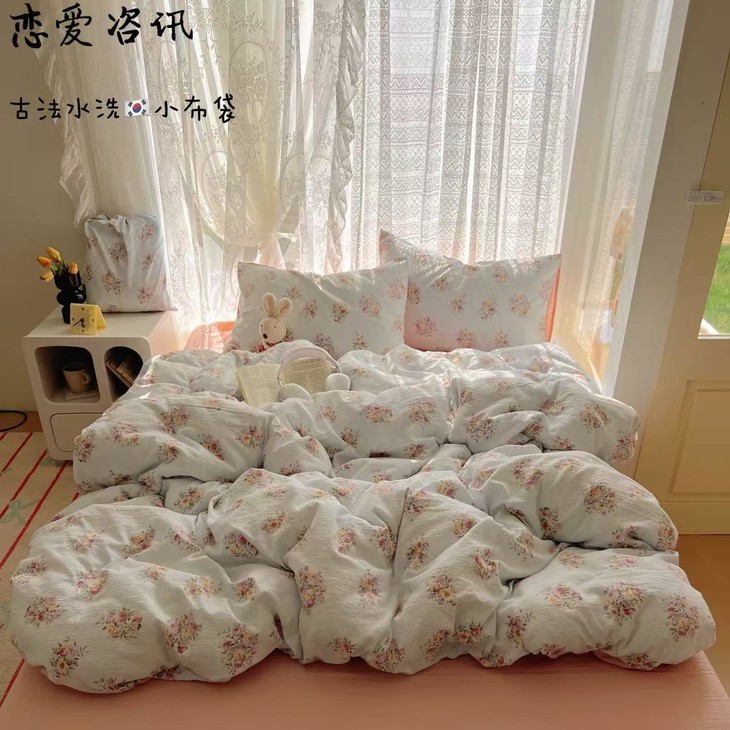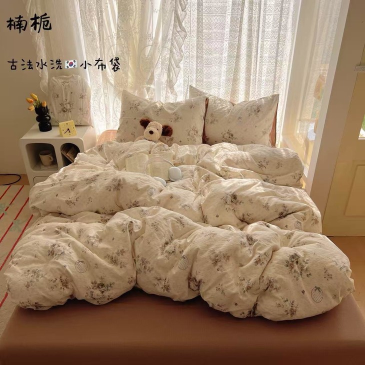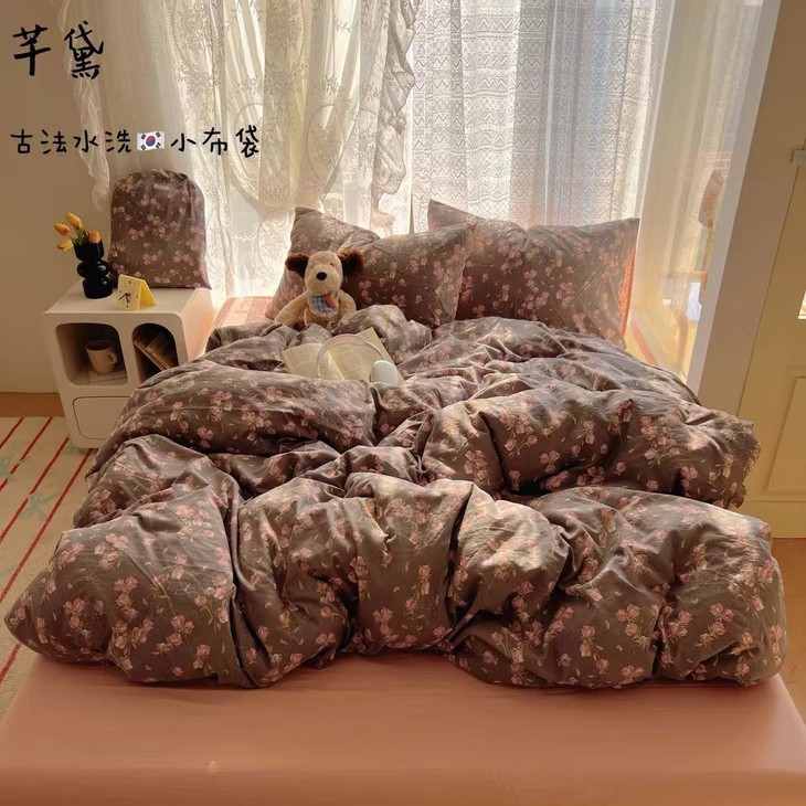 🍂出口🇰🇷韩国订单🍒【MONZECIKOIMS 水洗棉纱小布袋四件套】🌷花小钱真能睡高级感❗️ 💰淘宝价:126.8¥/套 💰团购价:89.9¥/件,❤️立省36¥