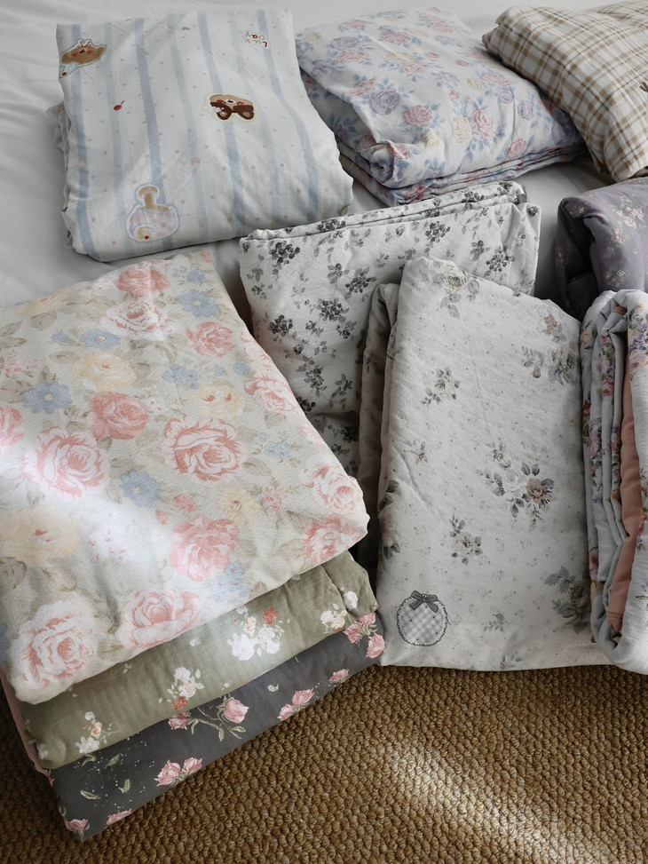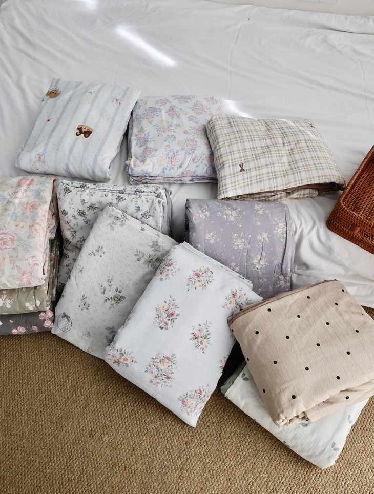 这种面料,之前都用于韩国客户定制的睡衣上 客户坚持开发成四件套,出来效果简直绝了!! 蓬松轻盈的质感,又绵又软 韩国🇰🇷进口面料,不得不说真的每一款都好看 选品也是眼花缭乱! 300多个面料花色中选出12个花色 美到犯规的清新感 将高级的质感和美感展露无疑 经过高温砂洗后的软糯舒服 12个花色美翻了每个花色都无可替代