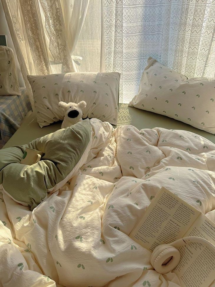 1️⃣0️⃣初茶 铺出一片温柔🌿 浅绿碎花裹着阳光 像把春日茶园搬上了床 把喧嚣滤成轻缓的歌 让每一寸时光都浸着慵懒的茶香 窝进去就不想出来啦~