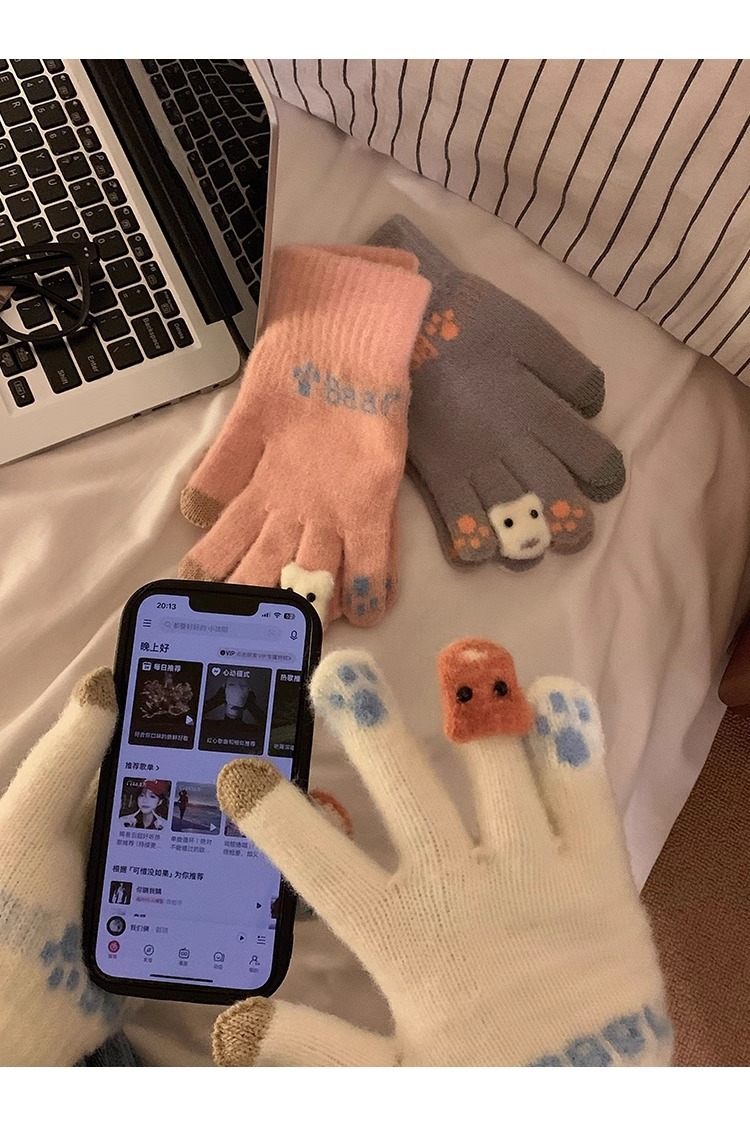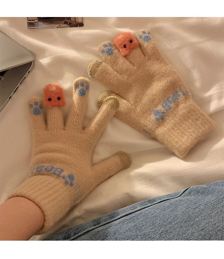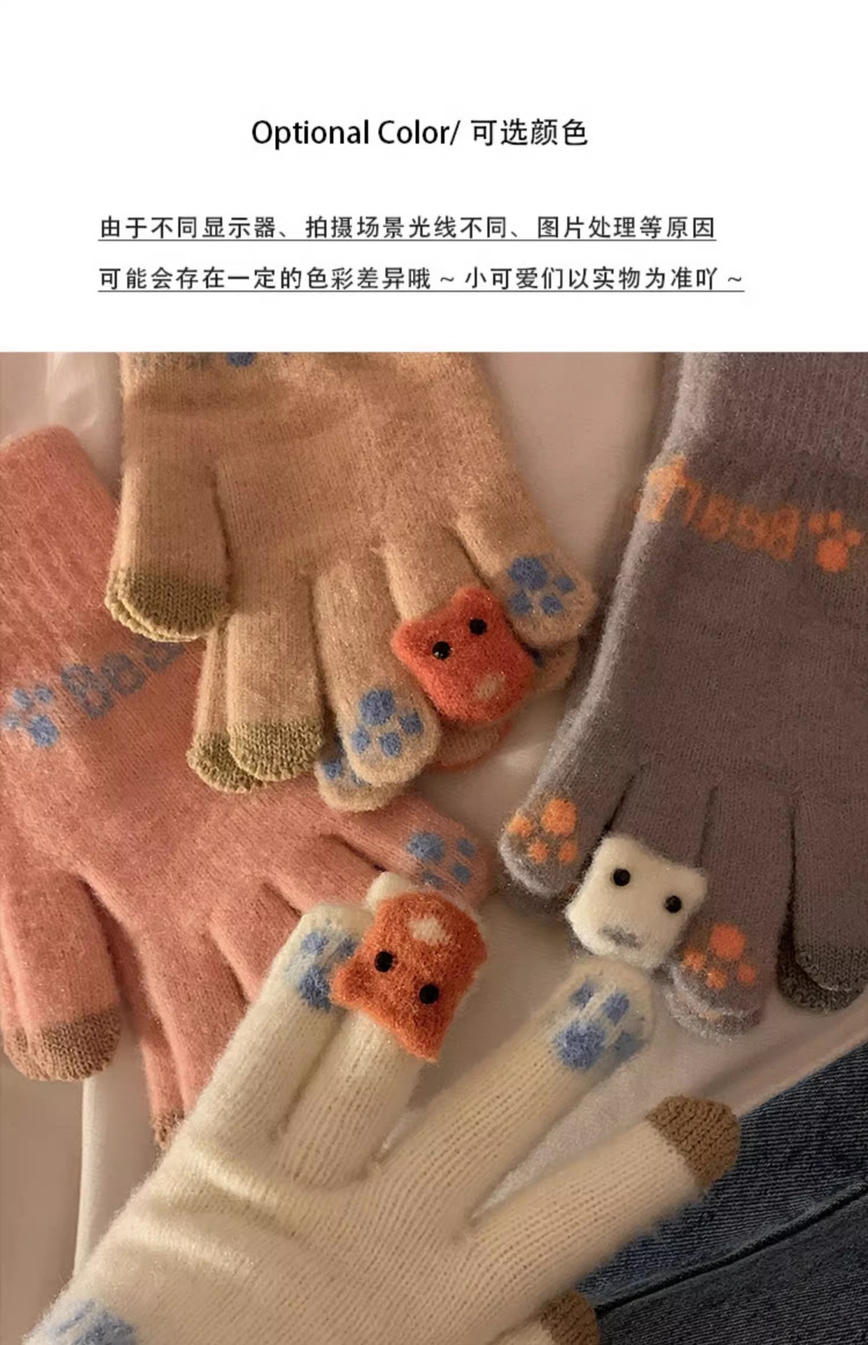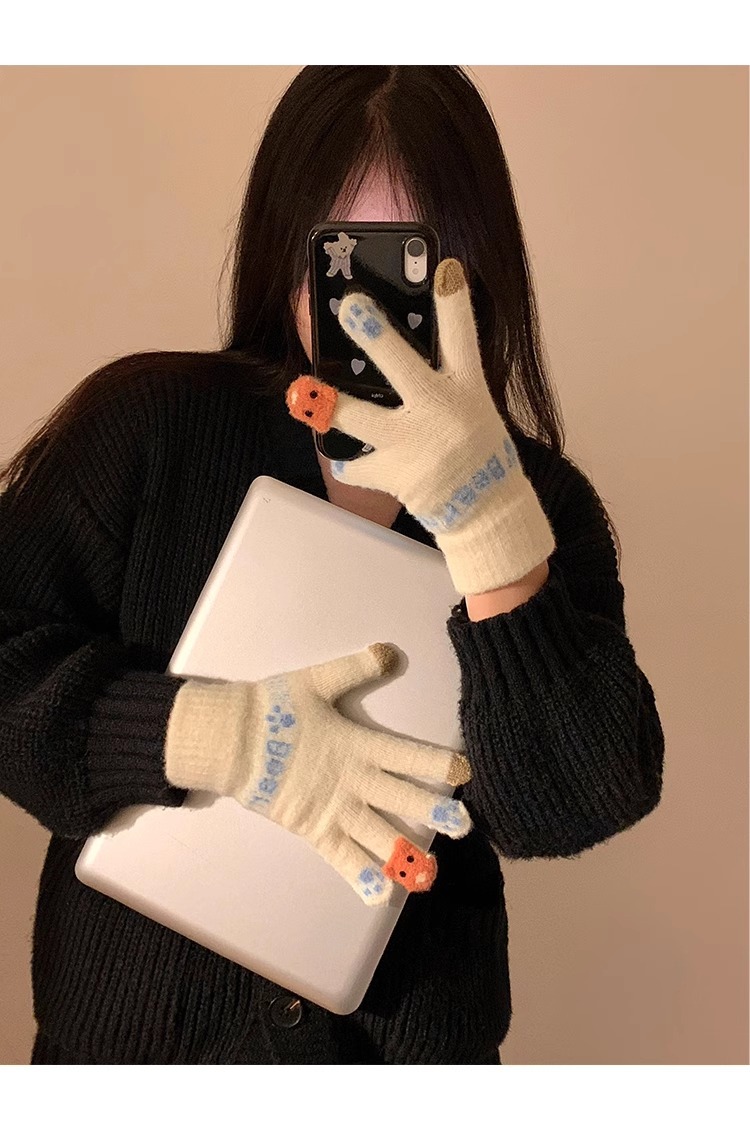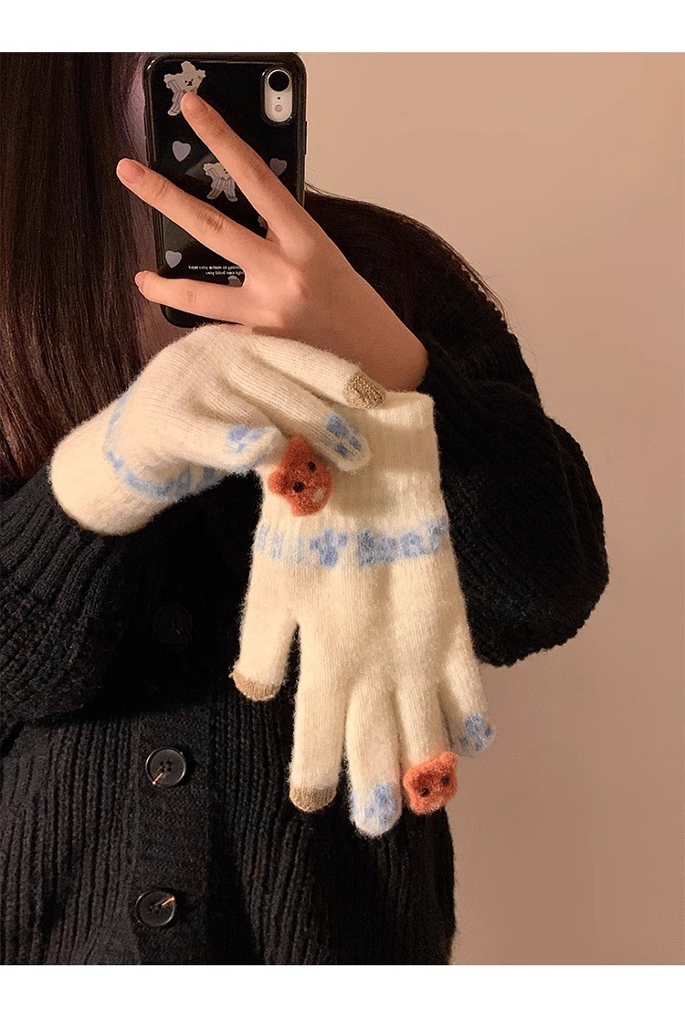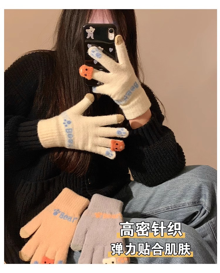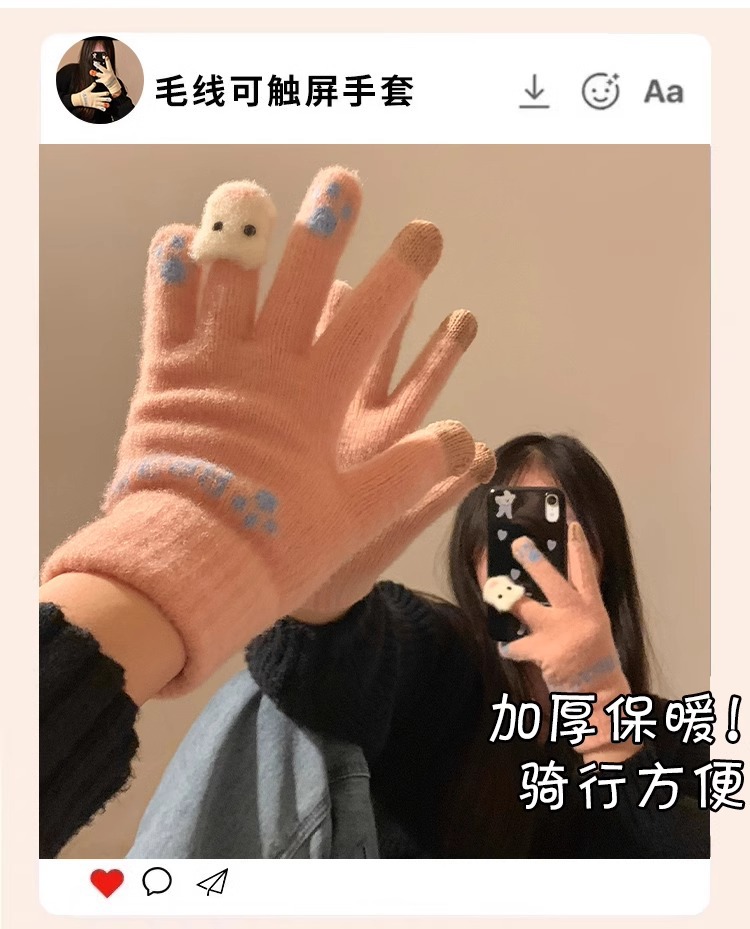 【加厚保暖!骑行方便可触屏】敲可爱毛绒手套女冬季加厚保暖可触屏针织毛线骑车防寒分指学生冬天手套。rc