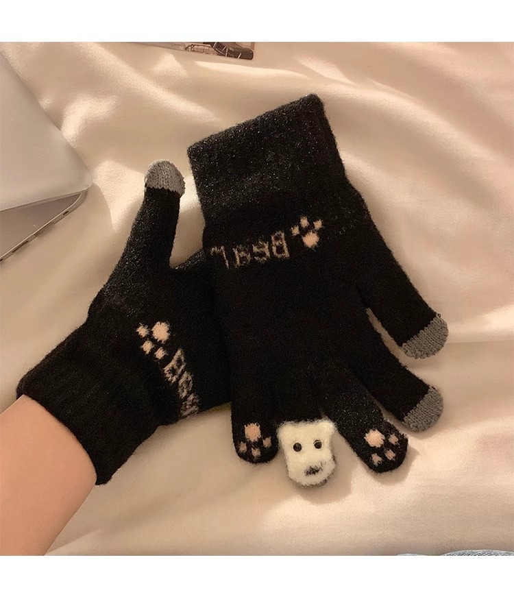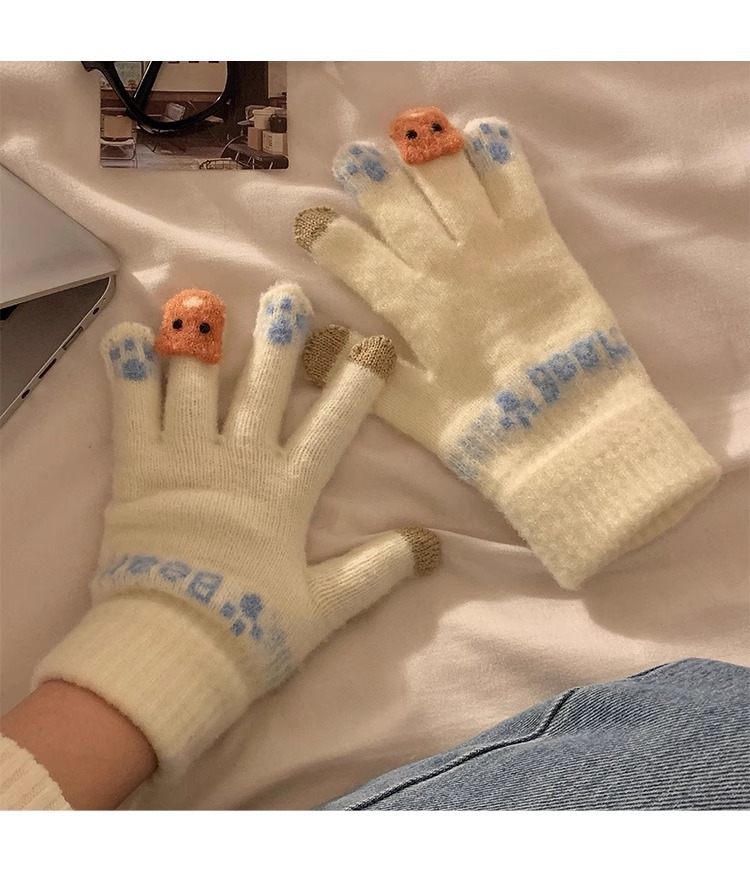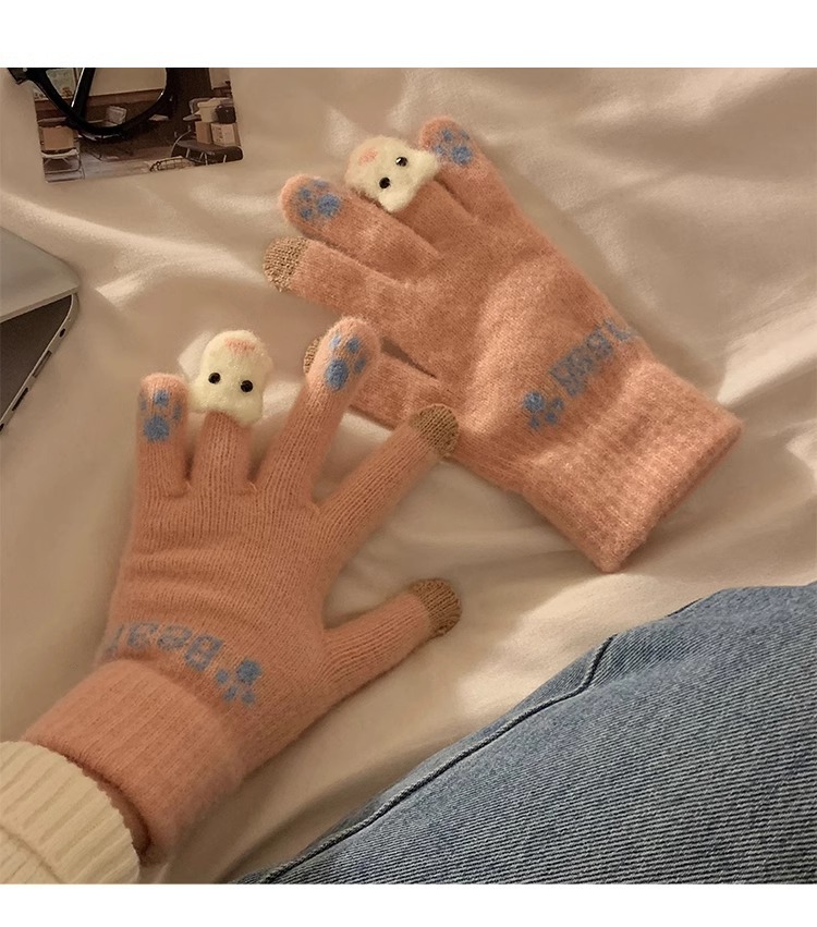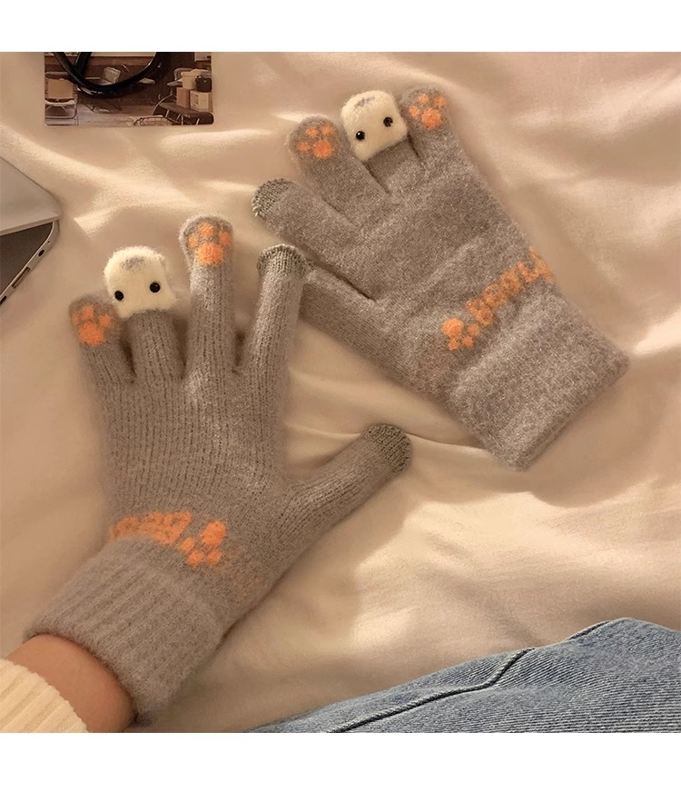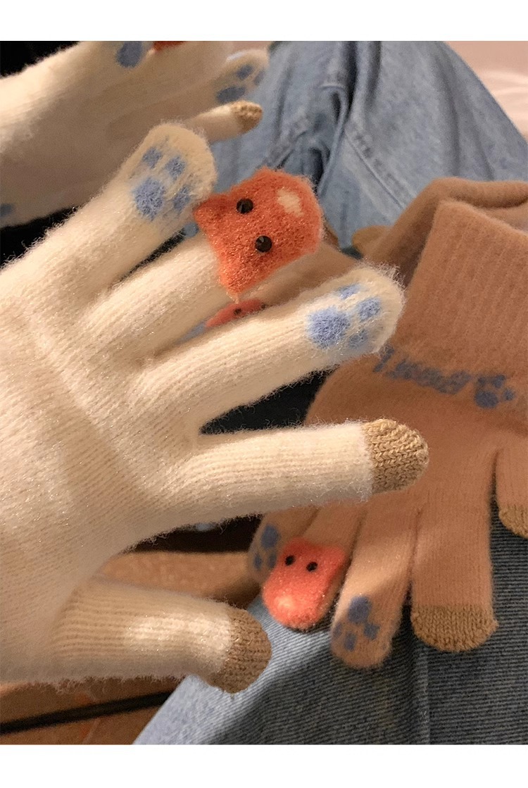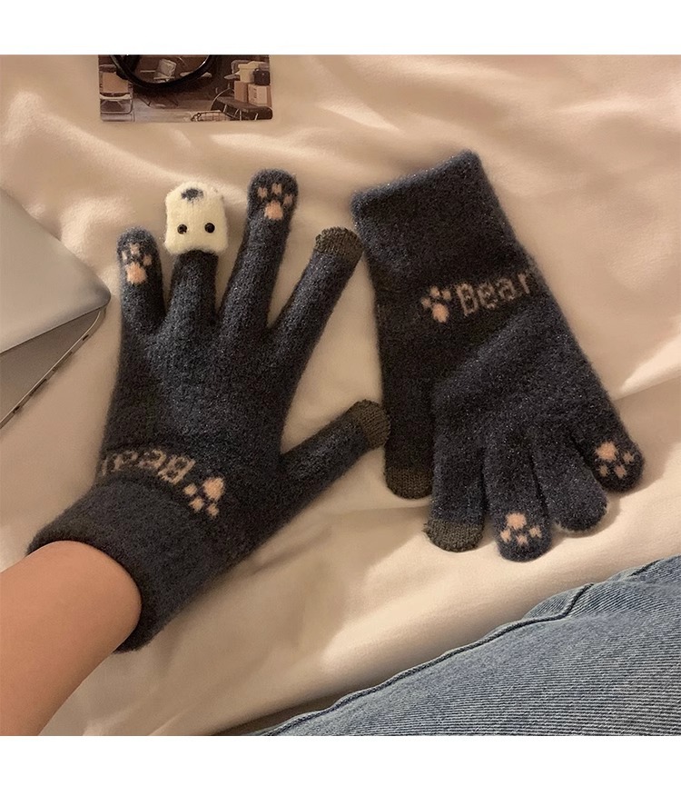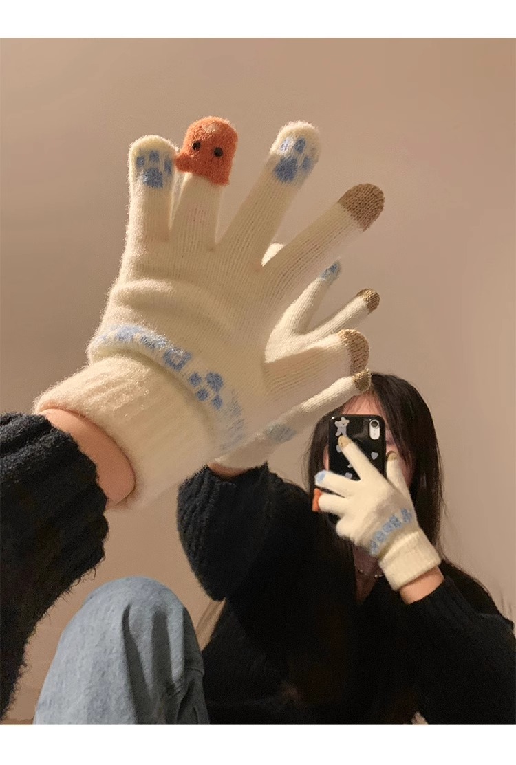 【加厚保暖!骑行方便可触屏】敲可爱毛绒手套女冬季加厚保暖可触屏针织毛线骑车防寒分指学生冬天手套。rc