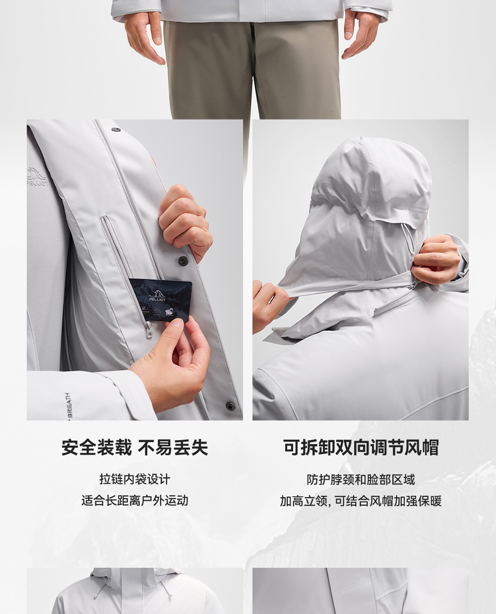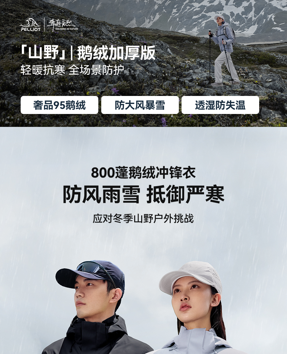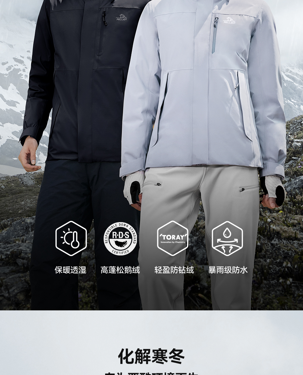 【山野 鹅绒版】伯希和户外800蓬羽绒冲锋衣防水登山服保暖外套