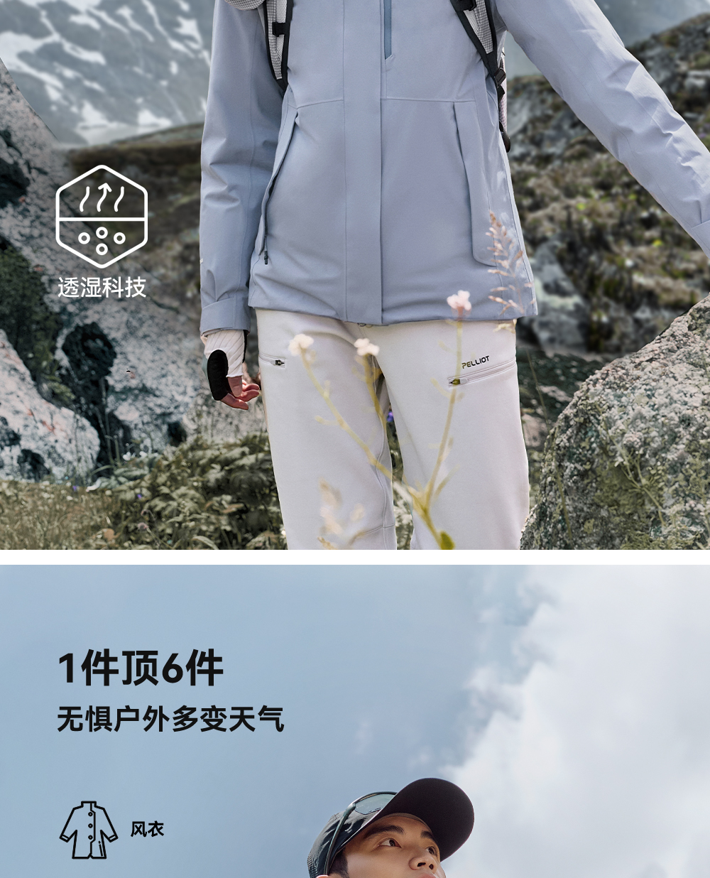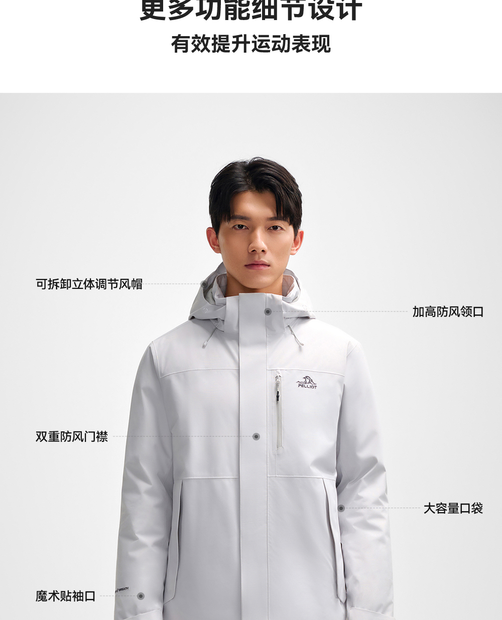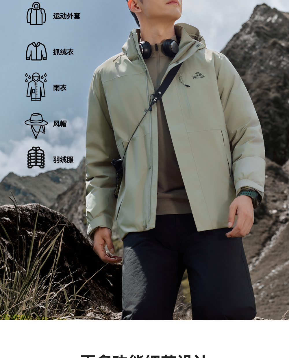 【山野 鹅绒版】伯希和户外800蓬羽绒冲锋衣防水登山服保暖外套