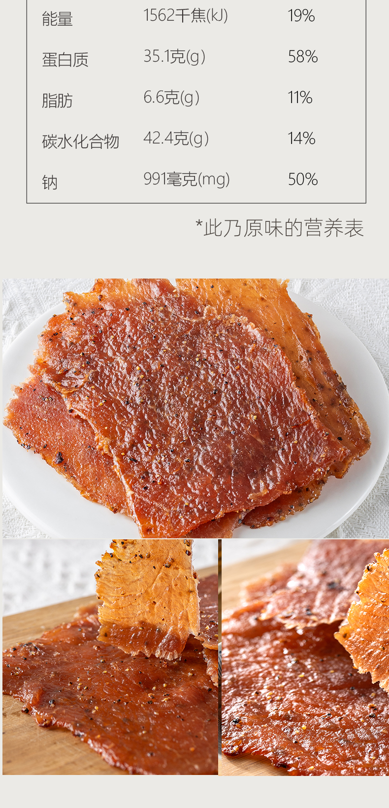 【好肉脯高蛋白】幸福口袋 潮汕吊龙猪肉脯 精选猪里脊原切 潮汕肉脯工艺 辅果木炭烤 原味/黑胡椒味