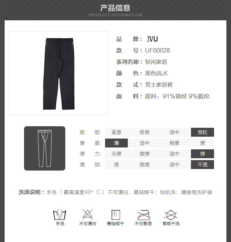 6F IVU男士秋季薄款运动裤可外穿休闲系带家居长裤