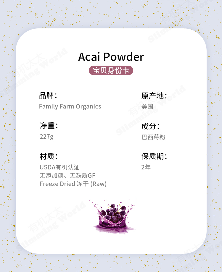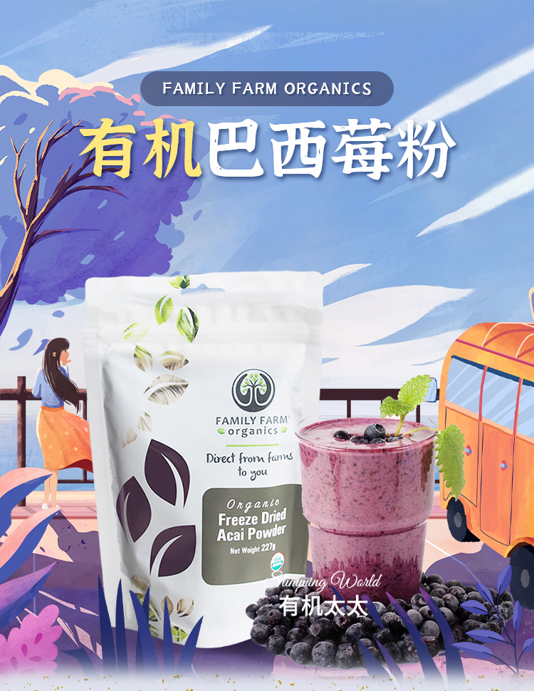【中国总代】有机太太美国冻干巴西莓粉Family巴西莓浆果粉无糖添加去氧化Acai《批量优惠联系客服》