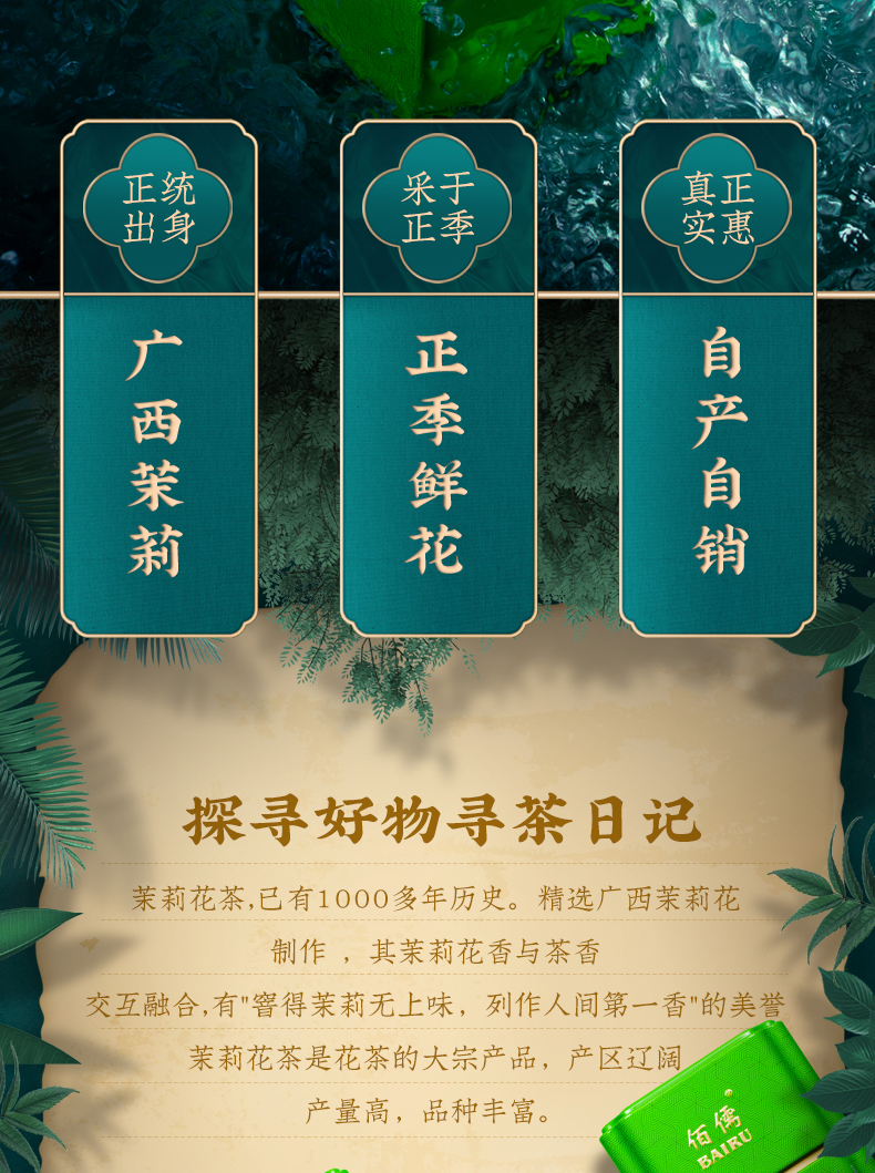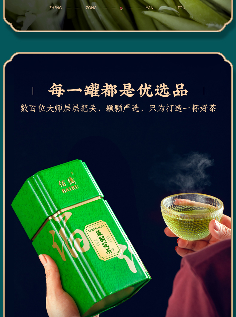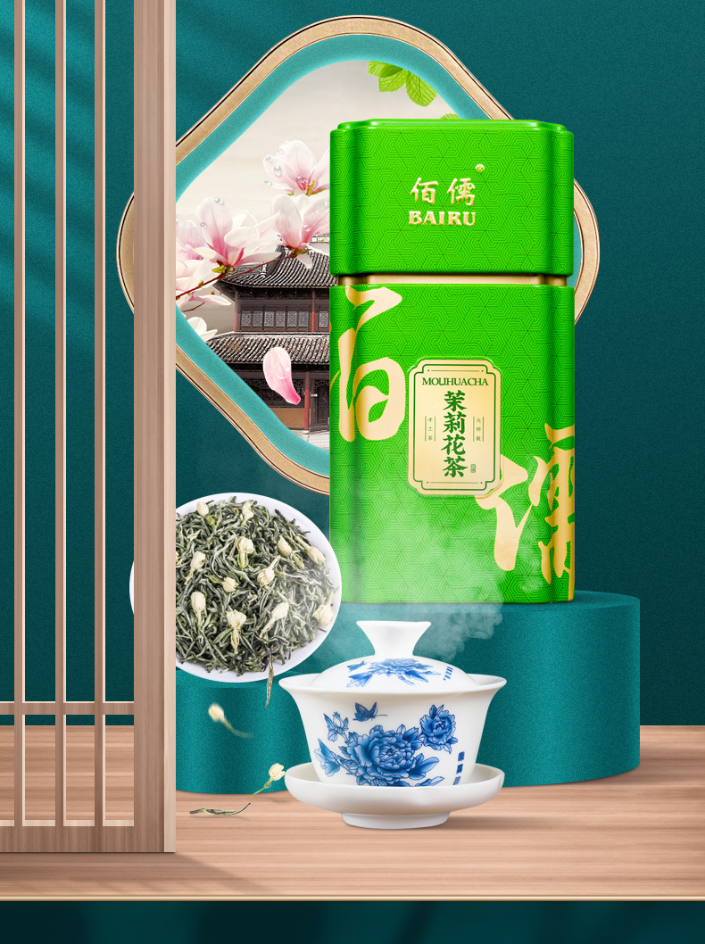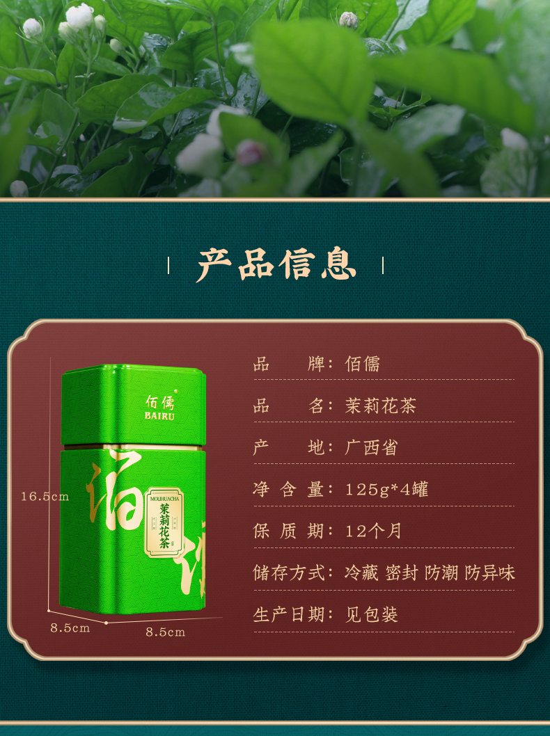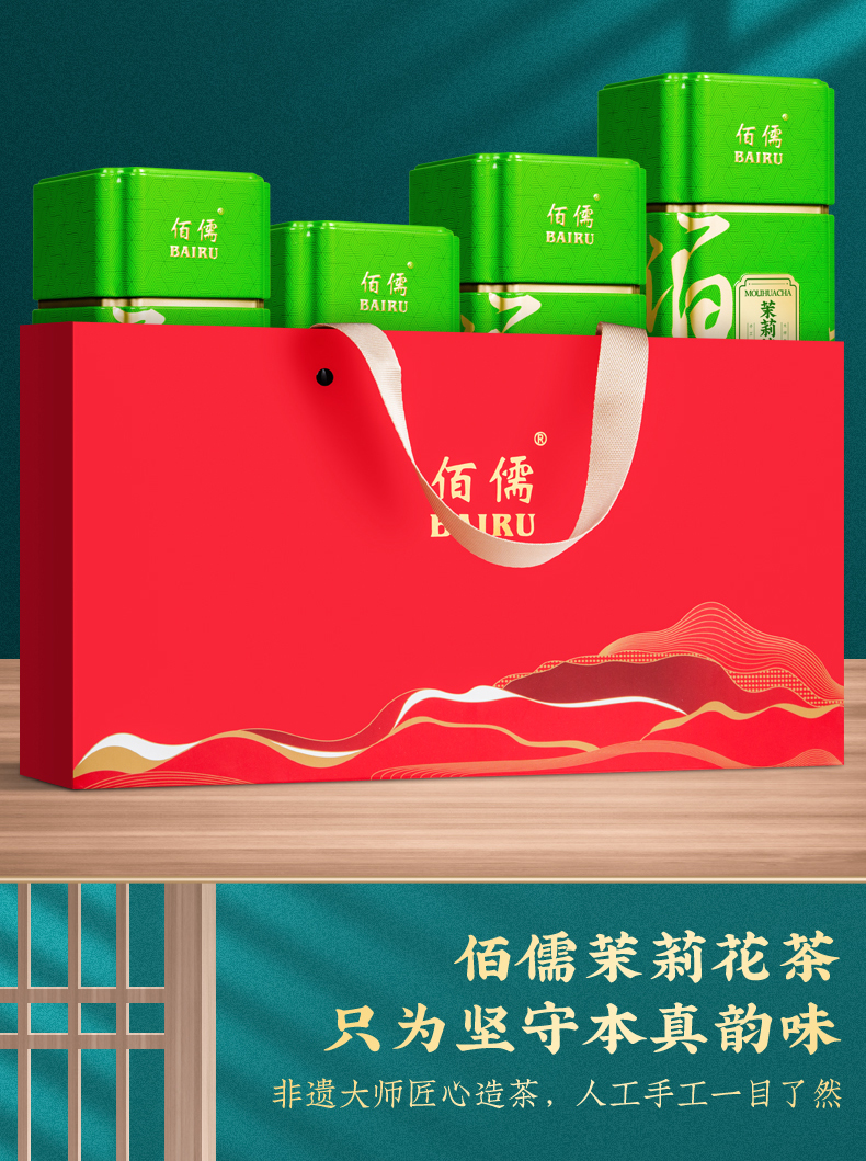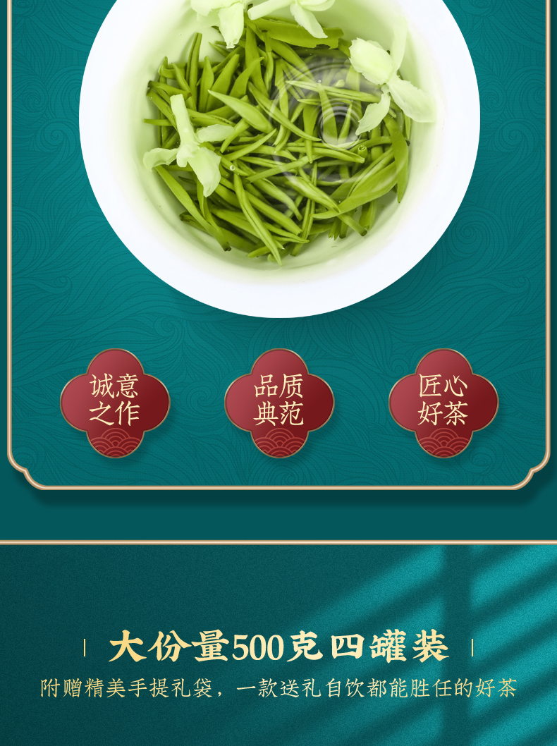 佰儒特级 新茶茉莉飘雪 浓香绿茶 茉莉花茶叶 花草茶罐装礼袋500g