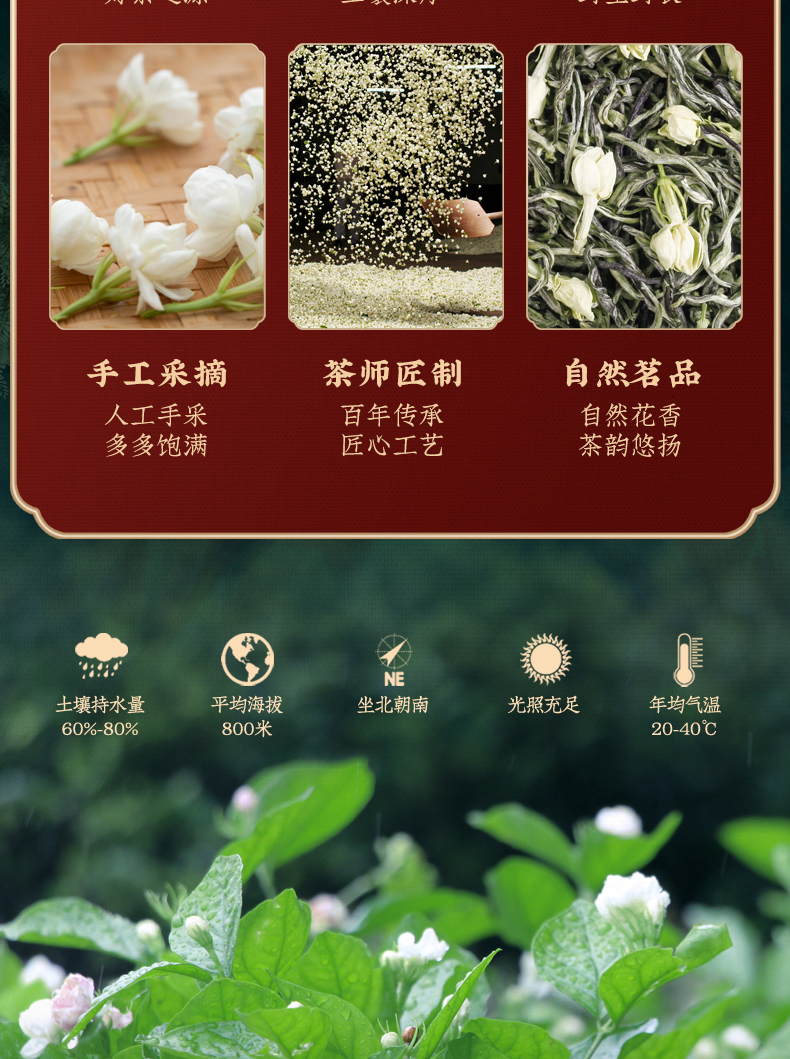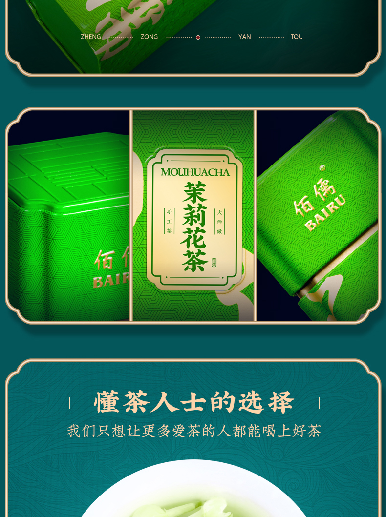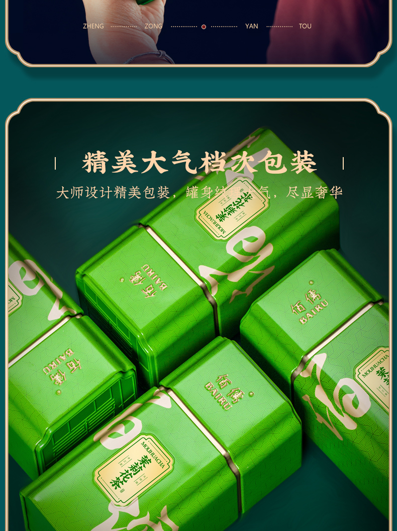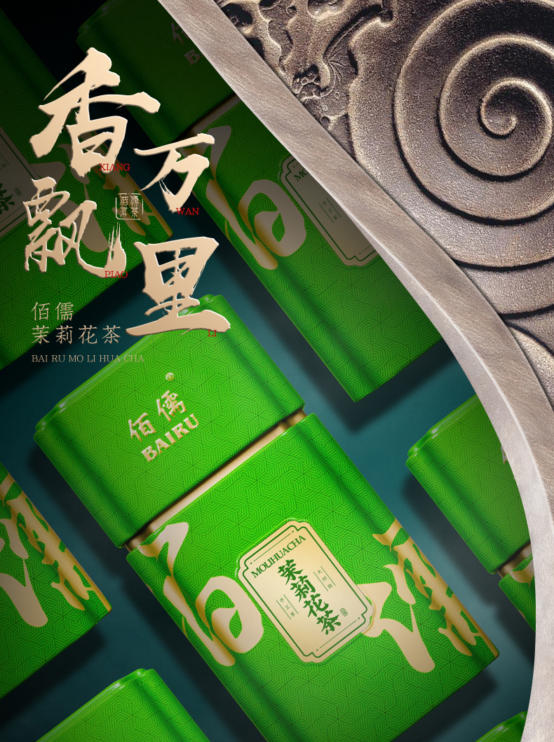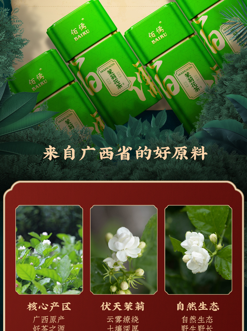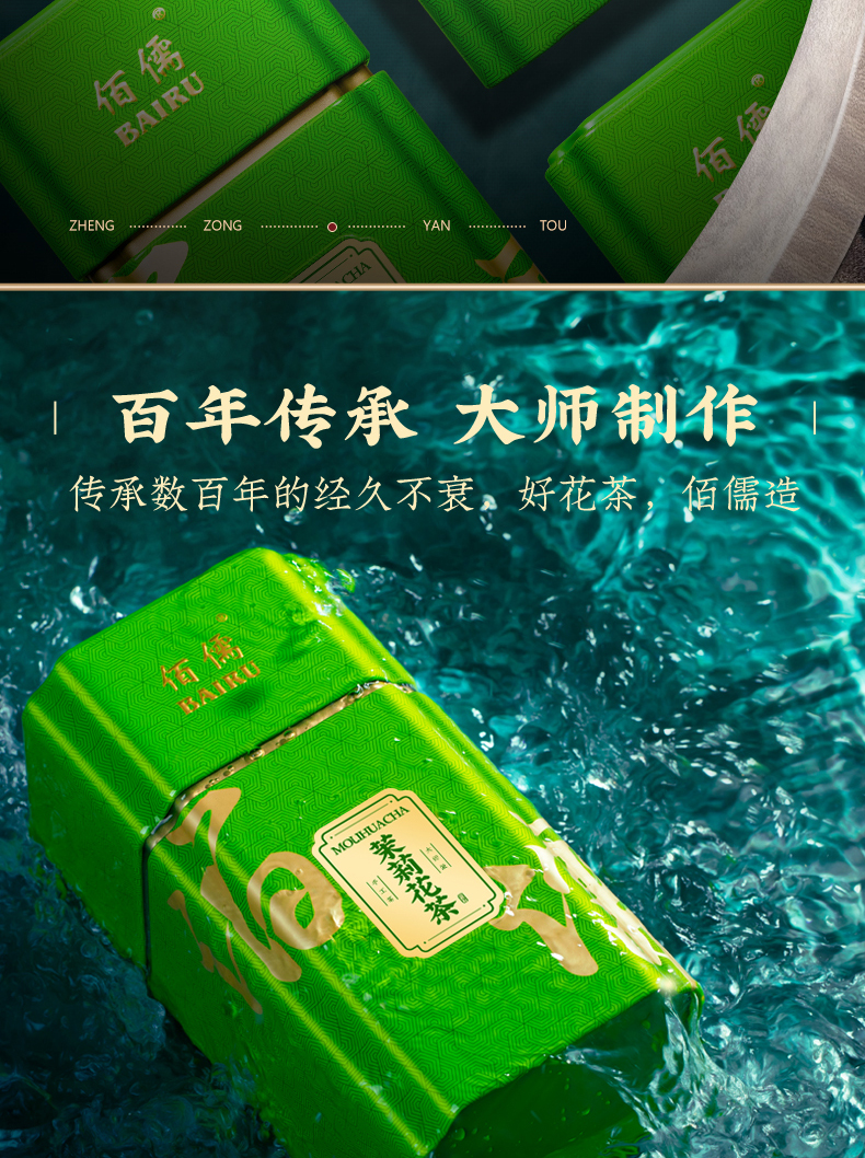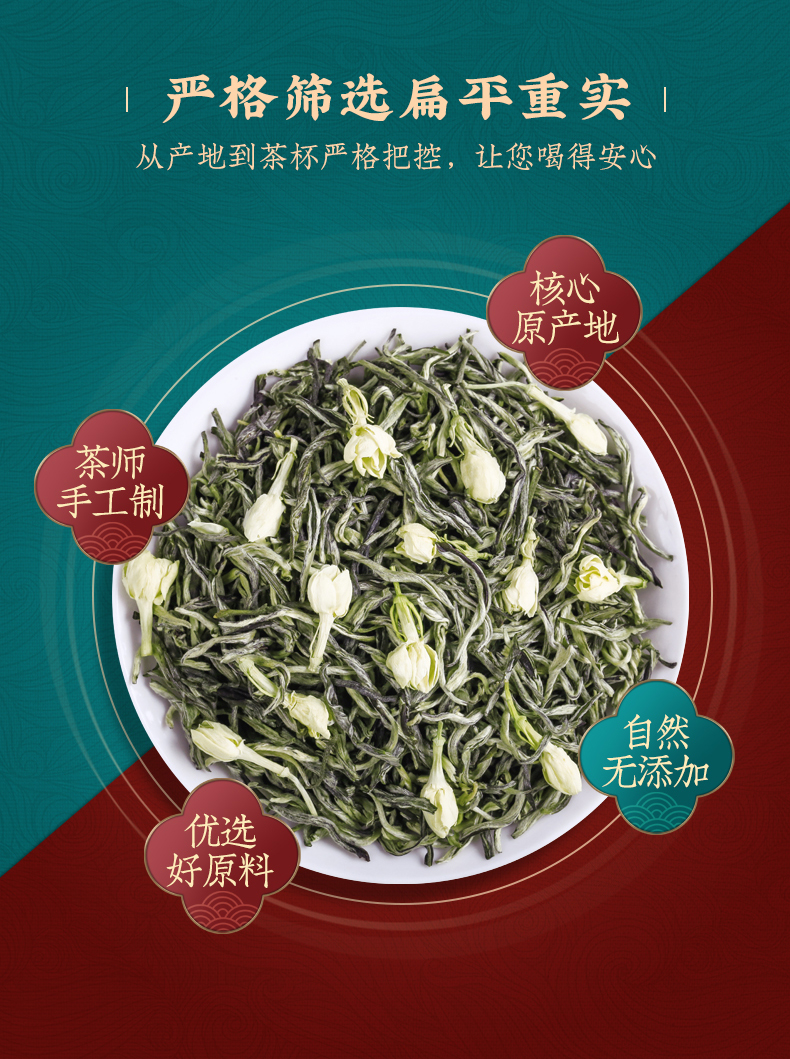 佰儒特级 新茶茉莉飘雪 浓香绿茶 茉莉花茶叶 花草茶罐装礼袋500g