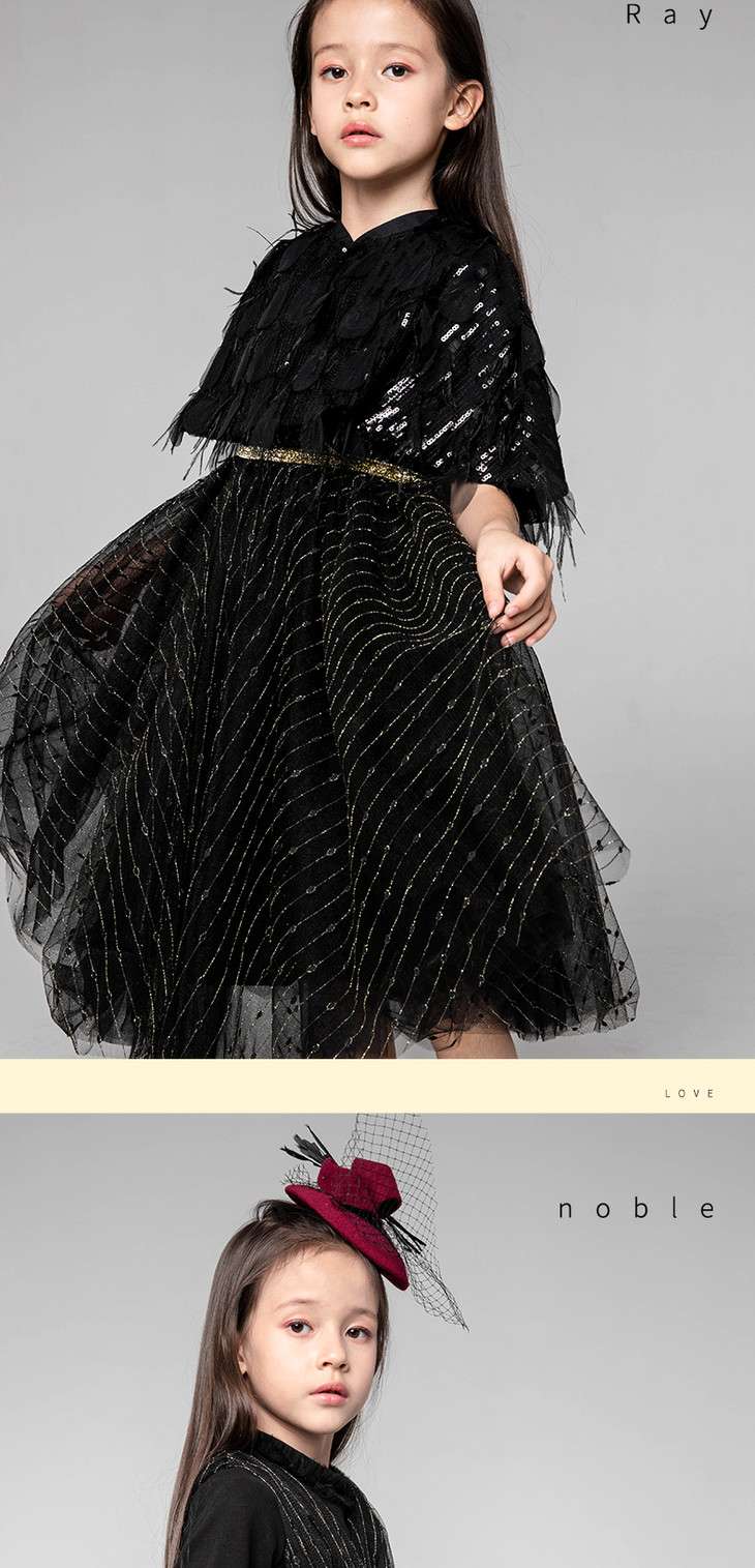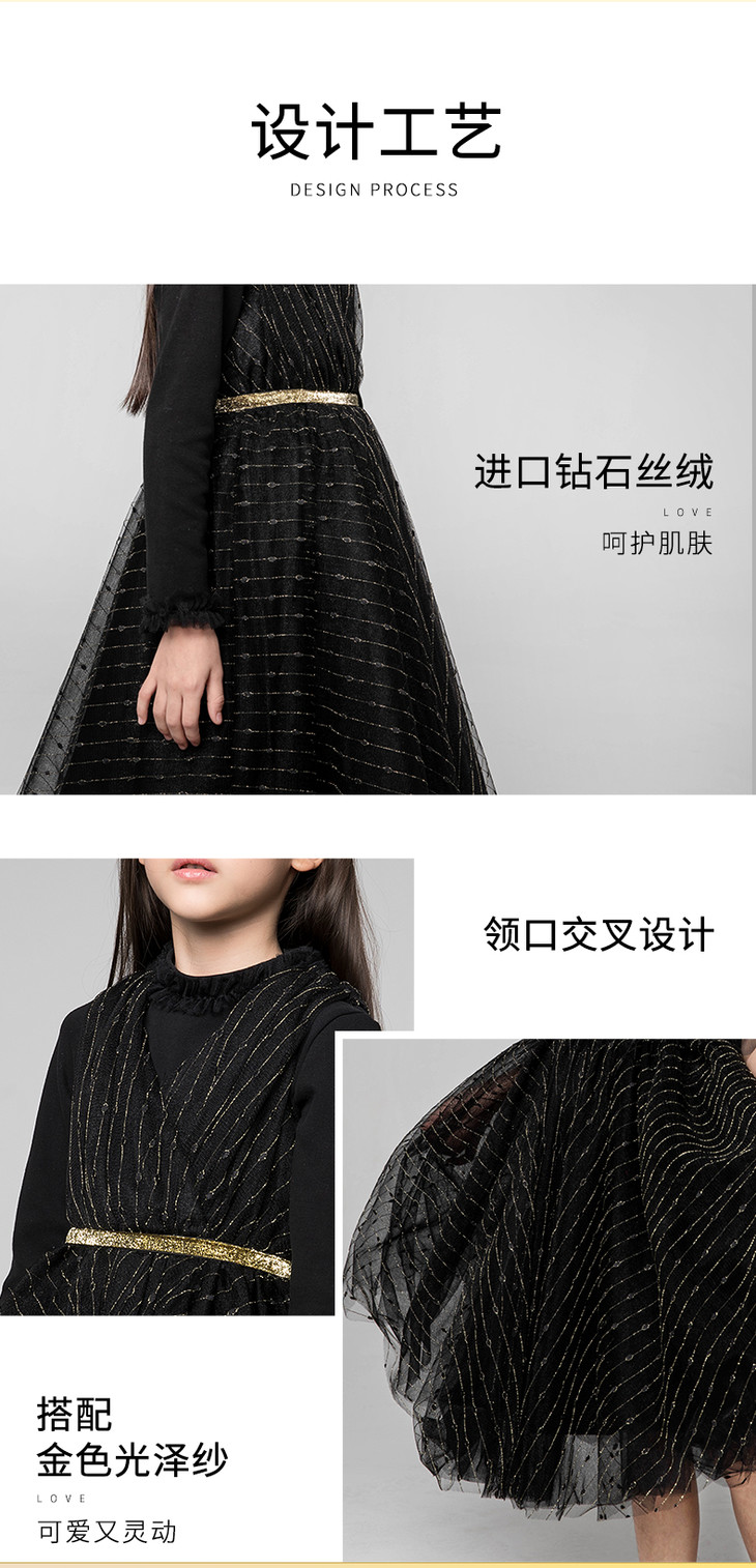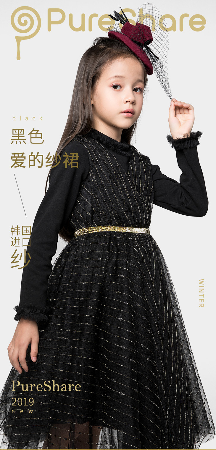pureshare蓬纱馆 儿童公主裙女童周岁连衣裙冬装洋气宝宝礼服裙-黑色爱的纱裙