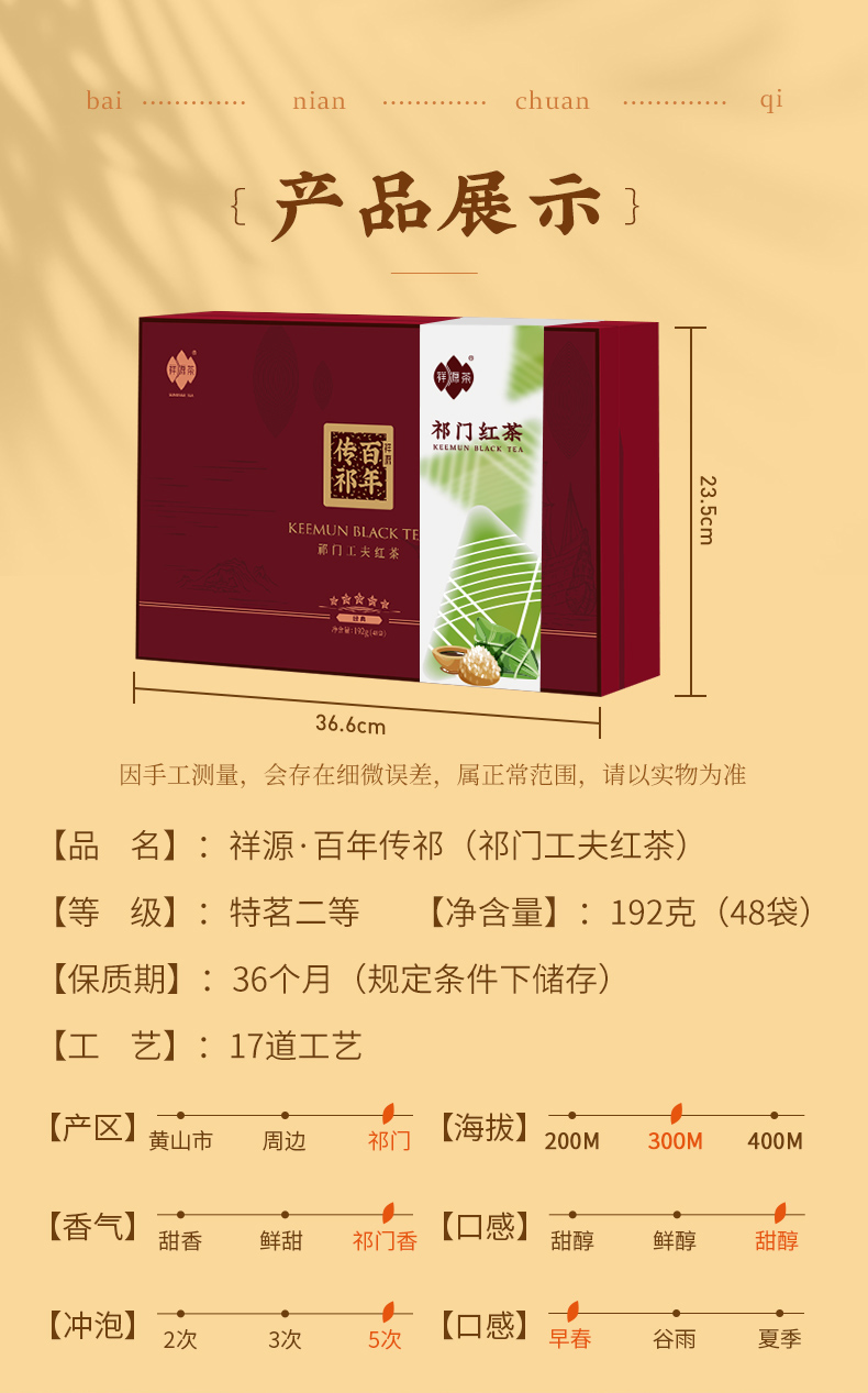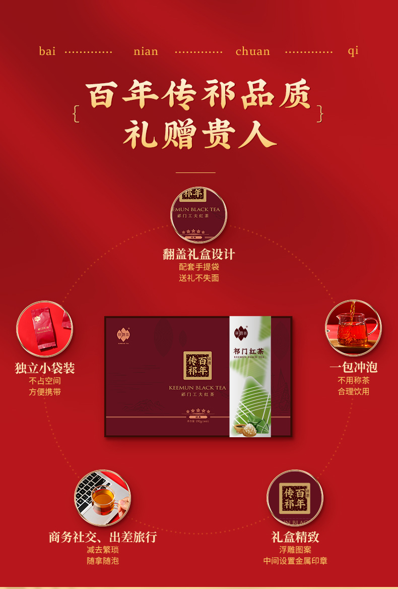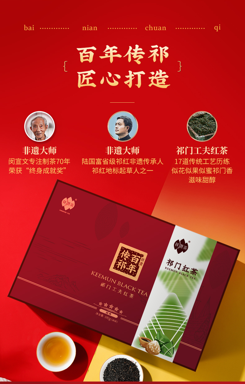 祥源茶百年传祁祁门工夫礼盒限量礼盒装特茗级192g
