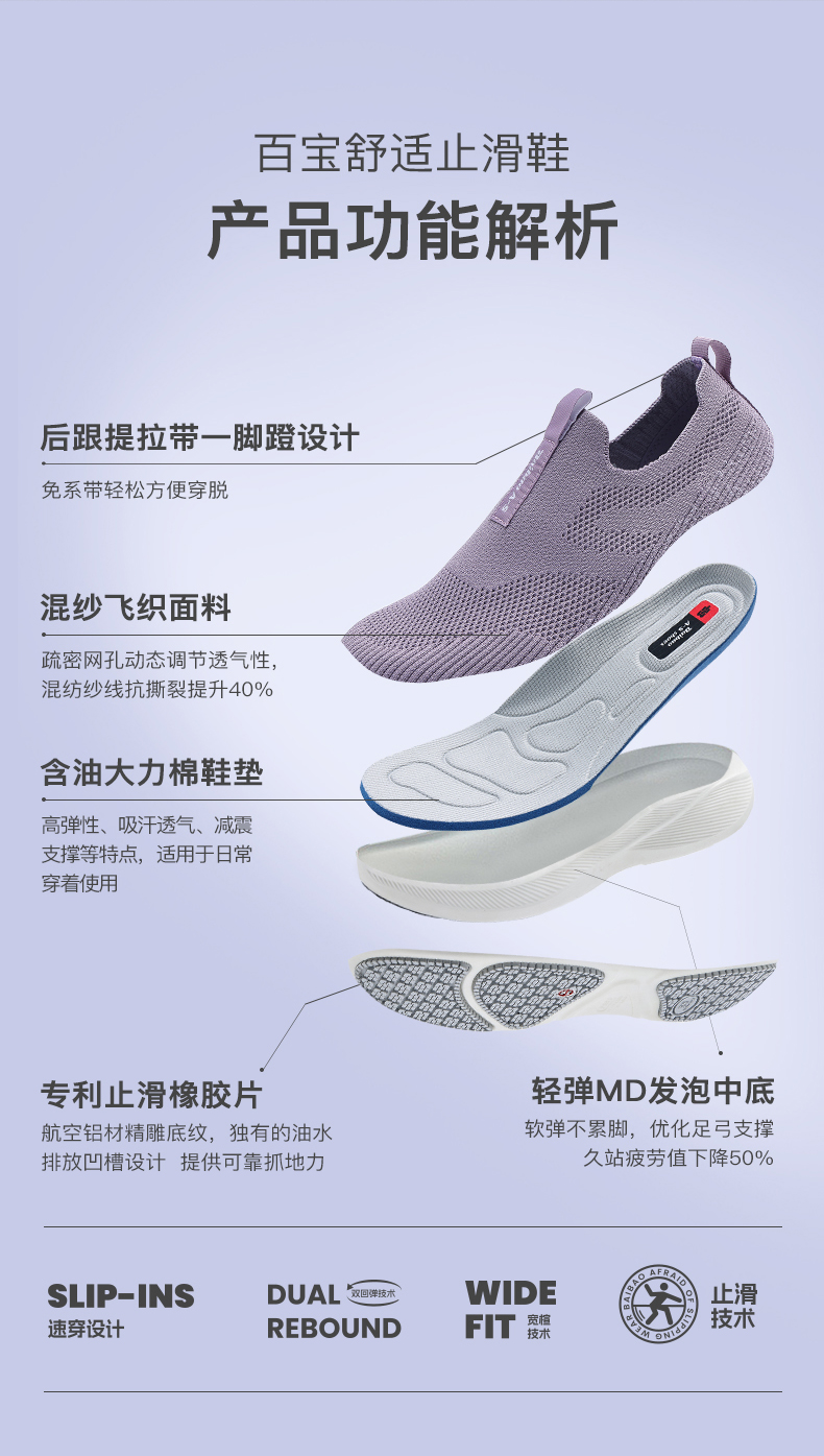 百宝女鞋一脚蹬网面透气健步鞋轻便女士休闲运动鞋防滑缓震送妈妈