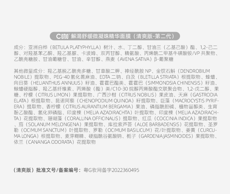 C咖解渴舒缓微凝珠精华面膜(清爽版-第二代)5g*5