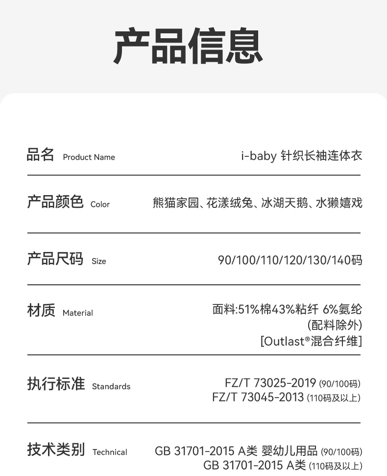【限时79元】i-baby outlast恒温抑菌针织长袖连体睡衣73-100码