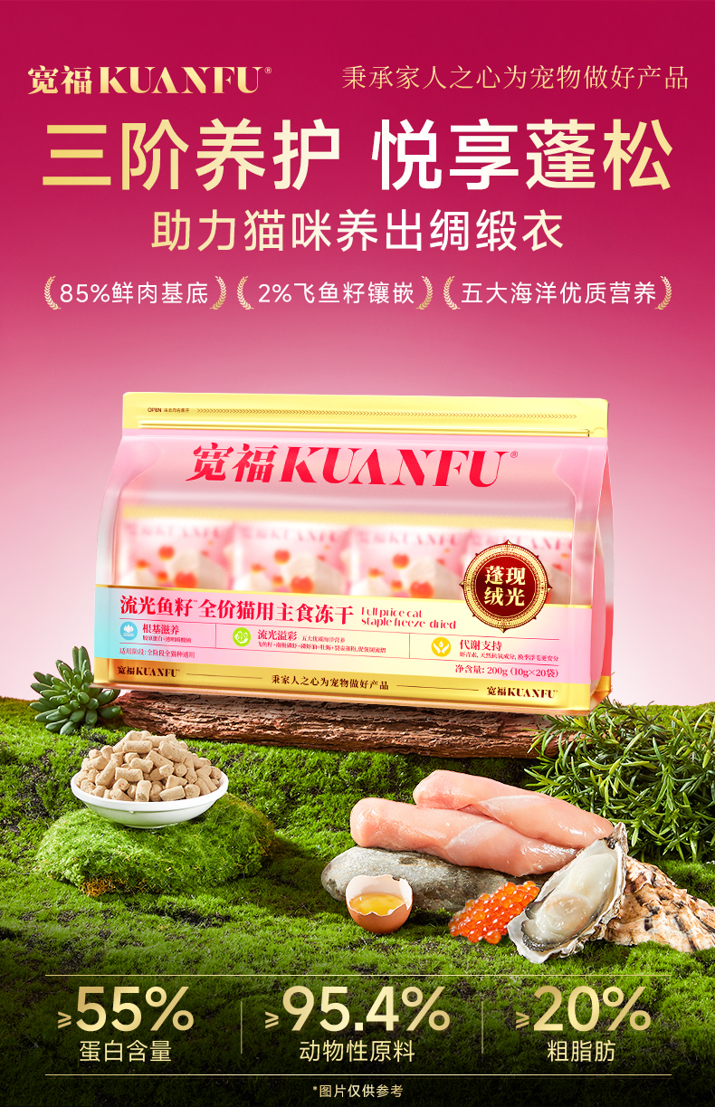 新品【流光鱼籽主食冻干】 85%鲜肉 五大海洋奢华营养加持 可见颗粒飞鱼籽镶嵌 三阶养护助力猫咪养出绸缎衣