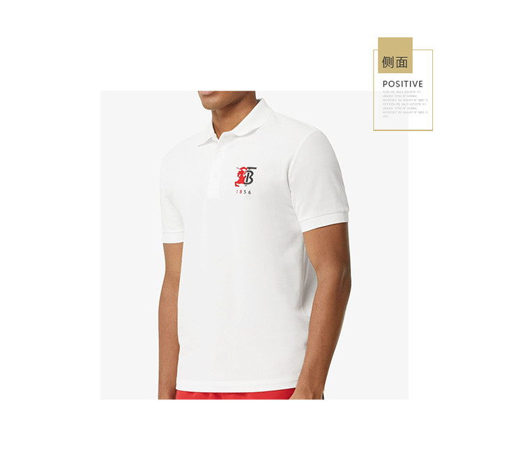 BURBERRY 巴宝莉 男士TB战马徽标图案珠地网眼布棉质短袖 Polo 衫 白色 8025756 A1464