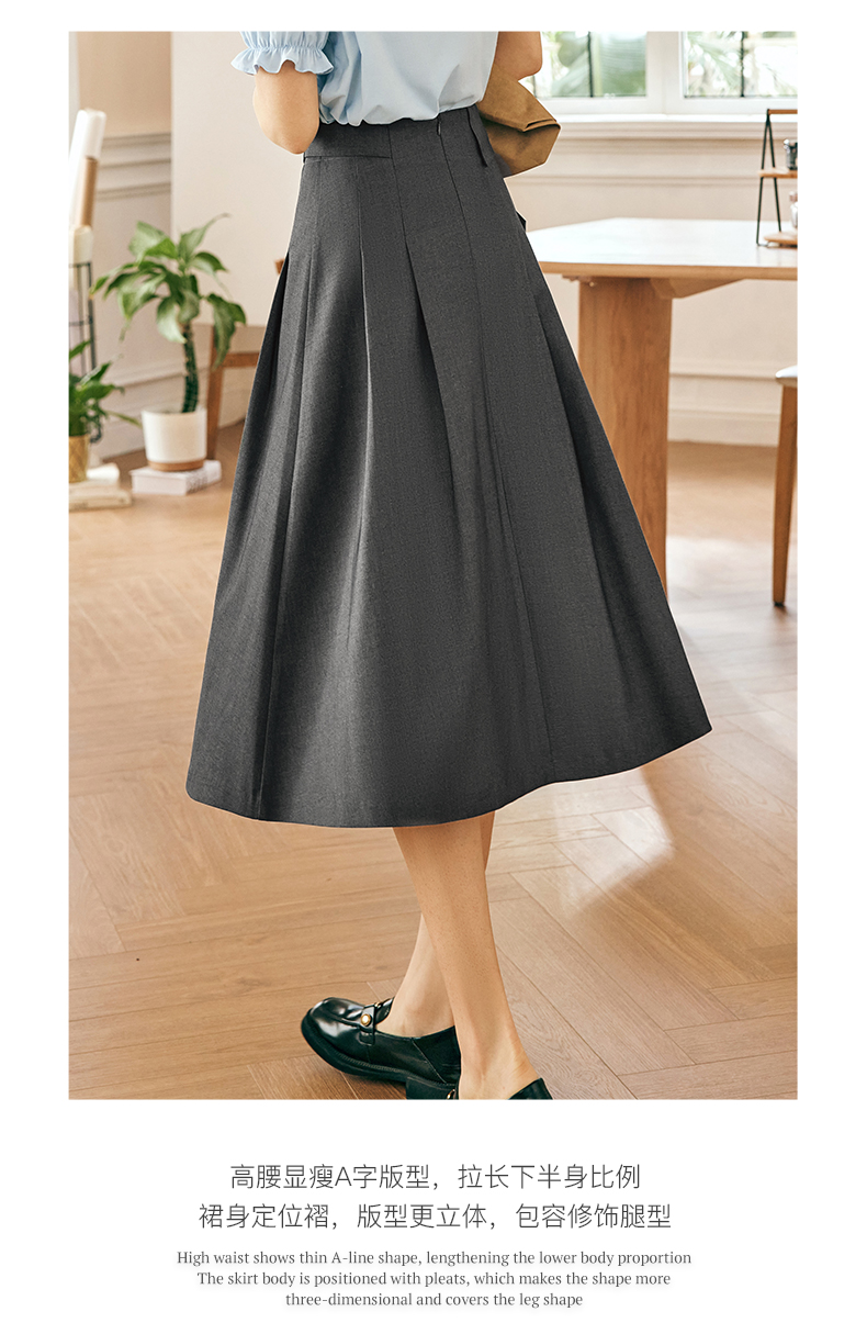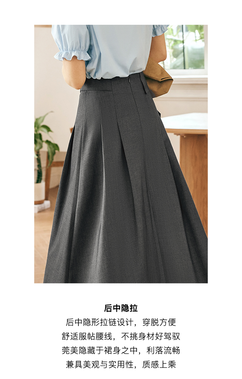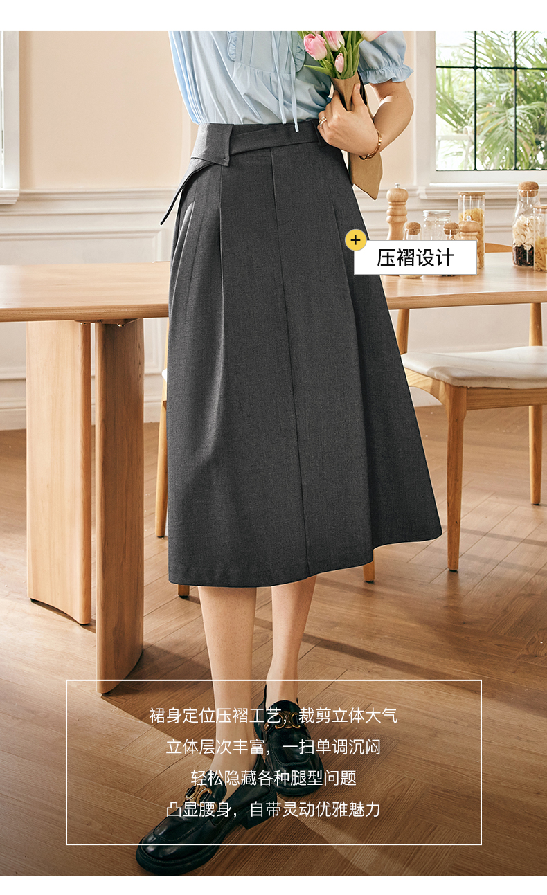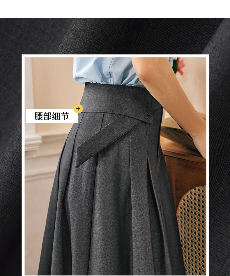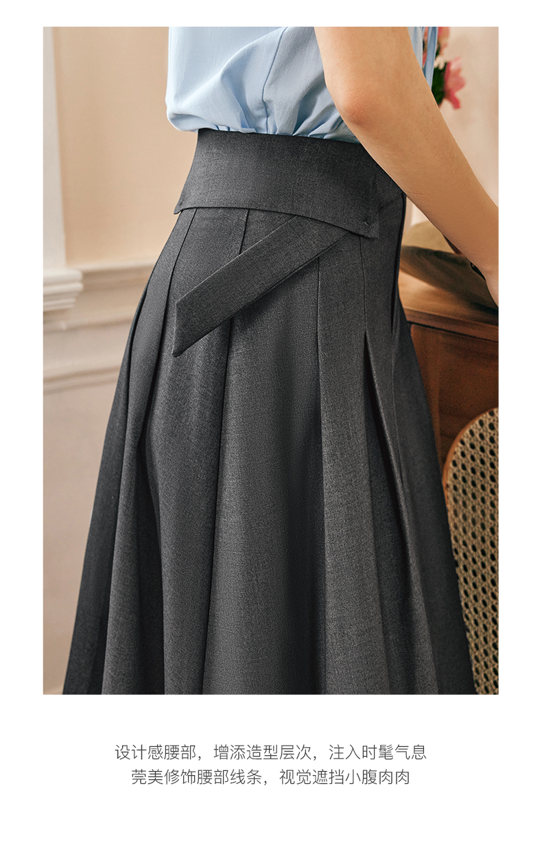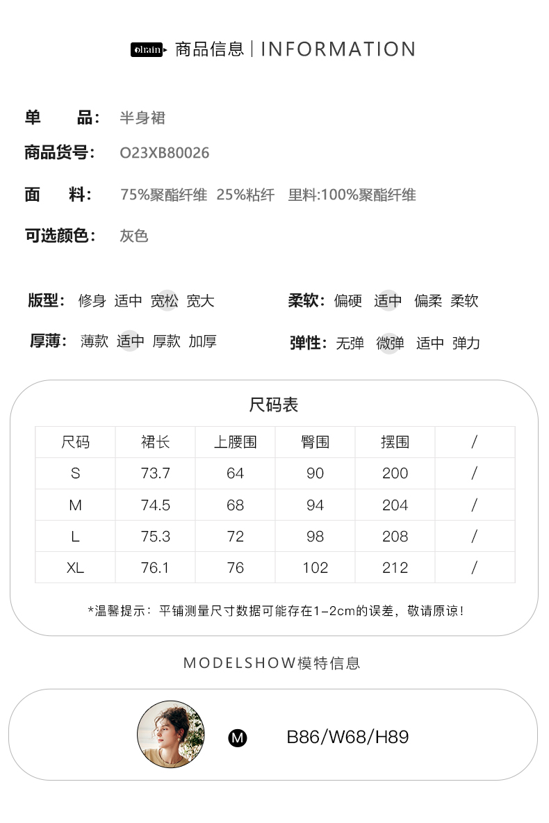 OLrain欧芮儿法式灰色半身裙女春季2023新款高腰气质百搭A字伞裙