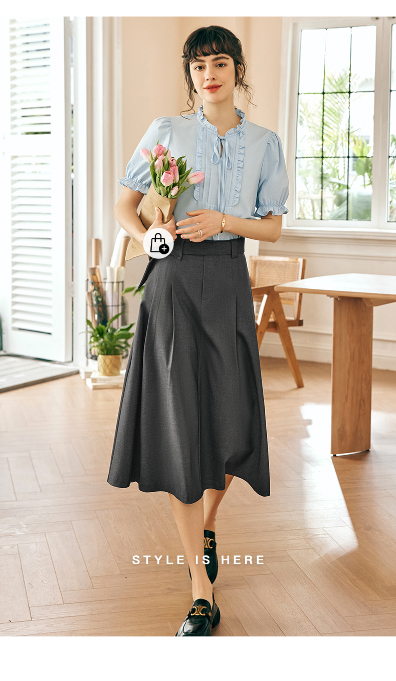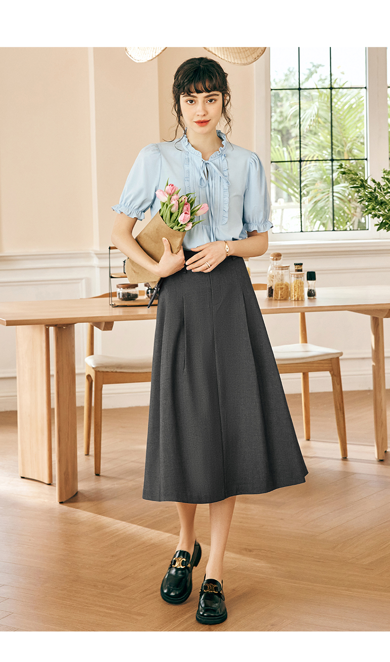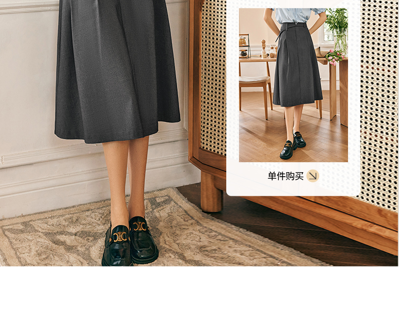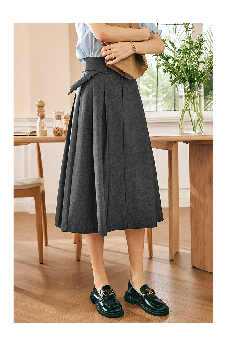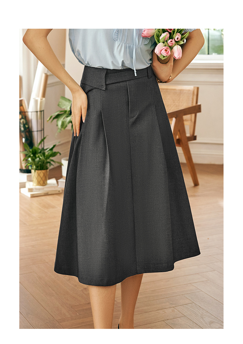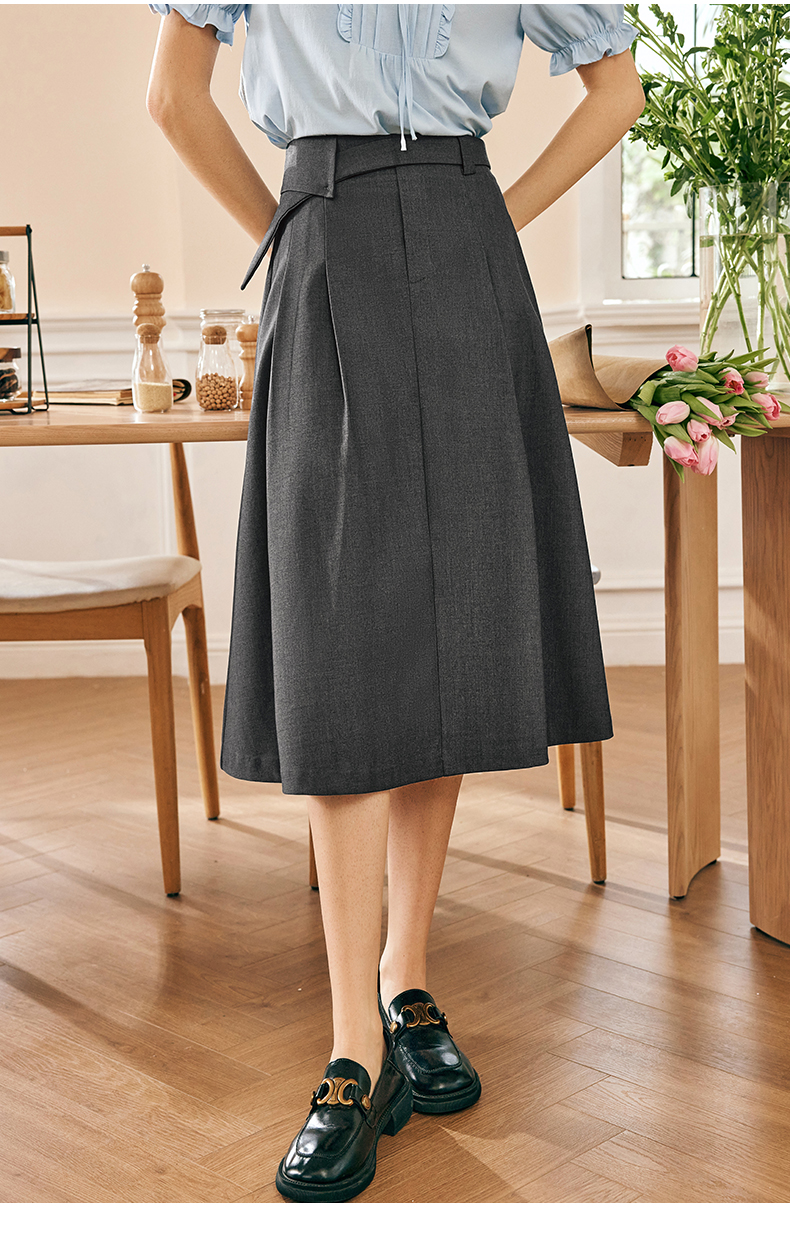 OLrain欧芮儿法式灰色半身裙女春季2023新款高腰气质百搭A字伞裙