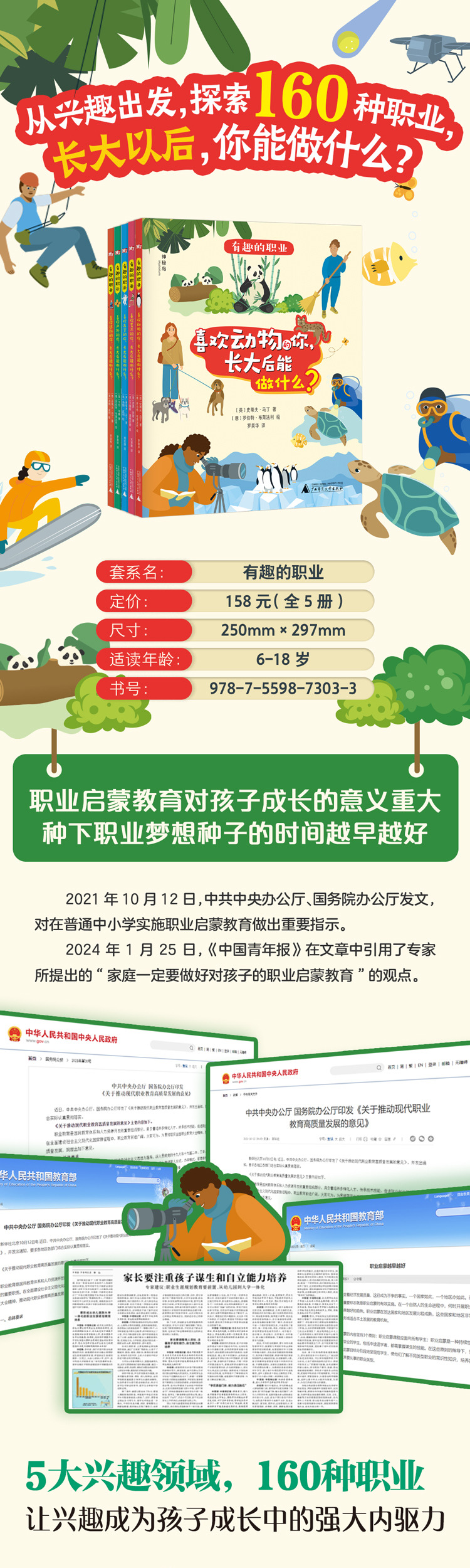 【6-18岁】有趣的职业(全5册)5大兴趣领域160种职业 探索孩子的兴趣与梦想