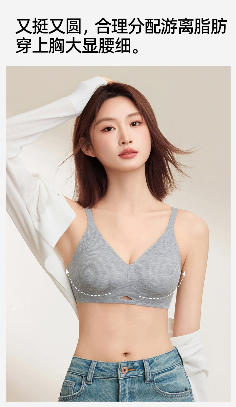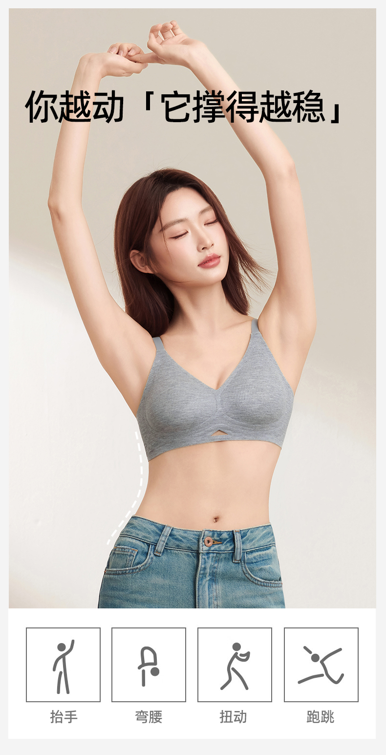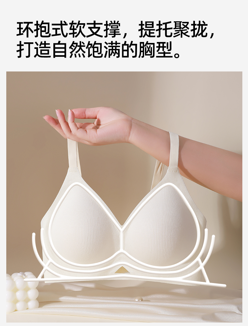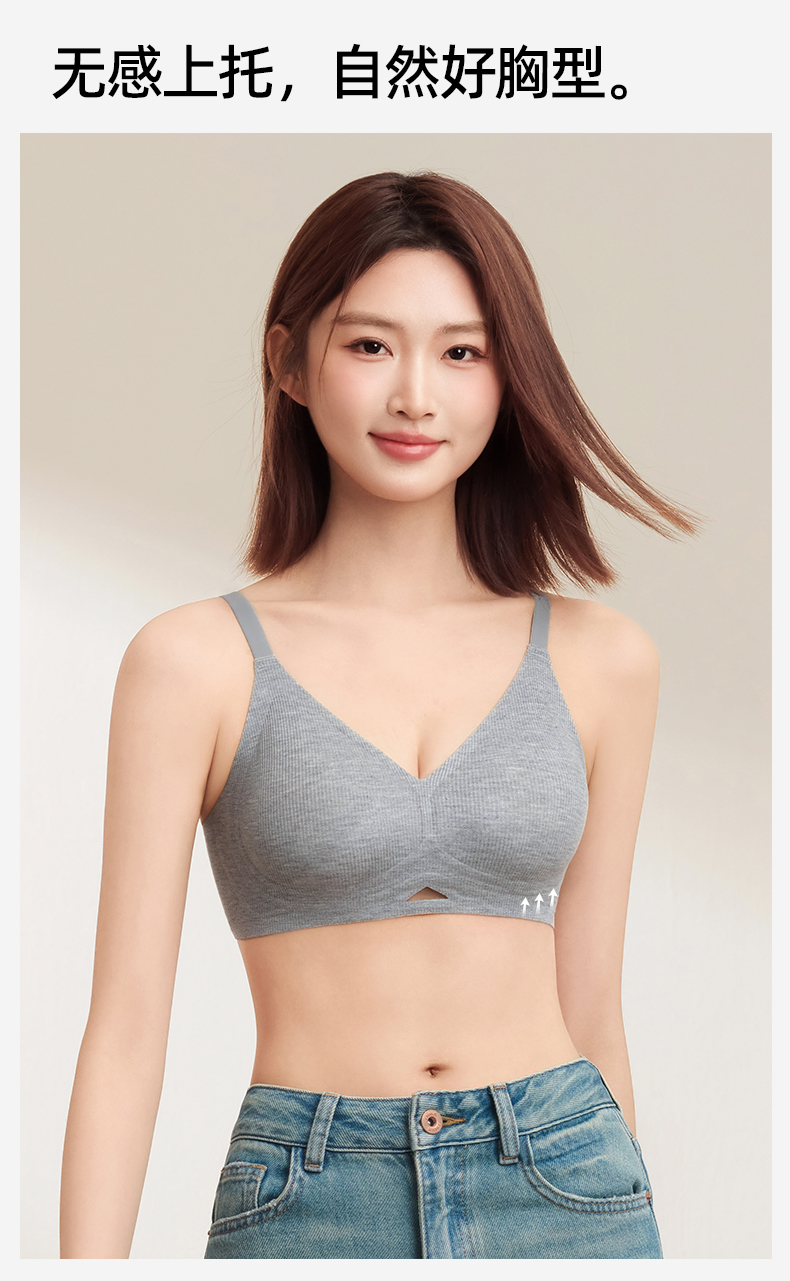 熳洁儿 舒适无痕内衣小胸聚拢防下垂螺纹舒适百搭ABC杯轻运动风25261502